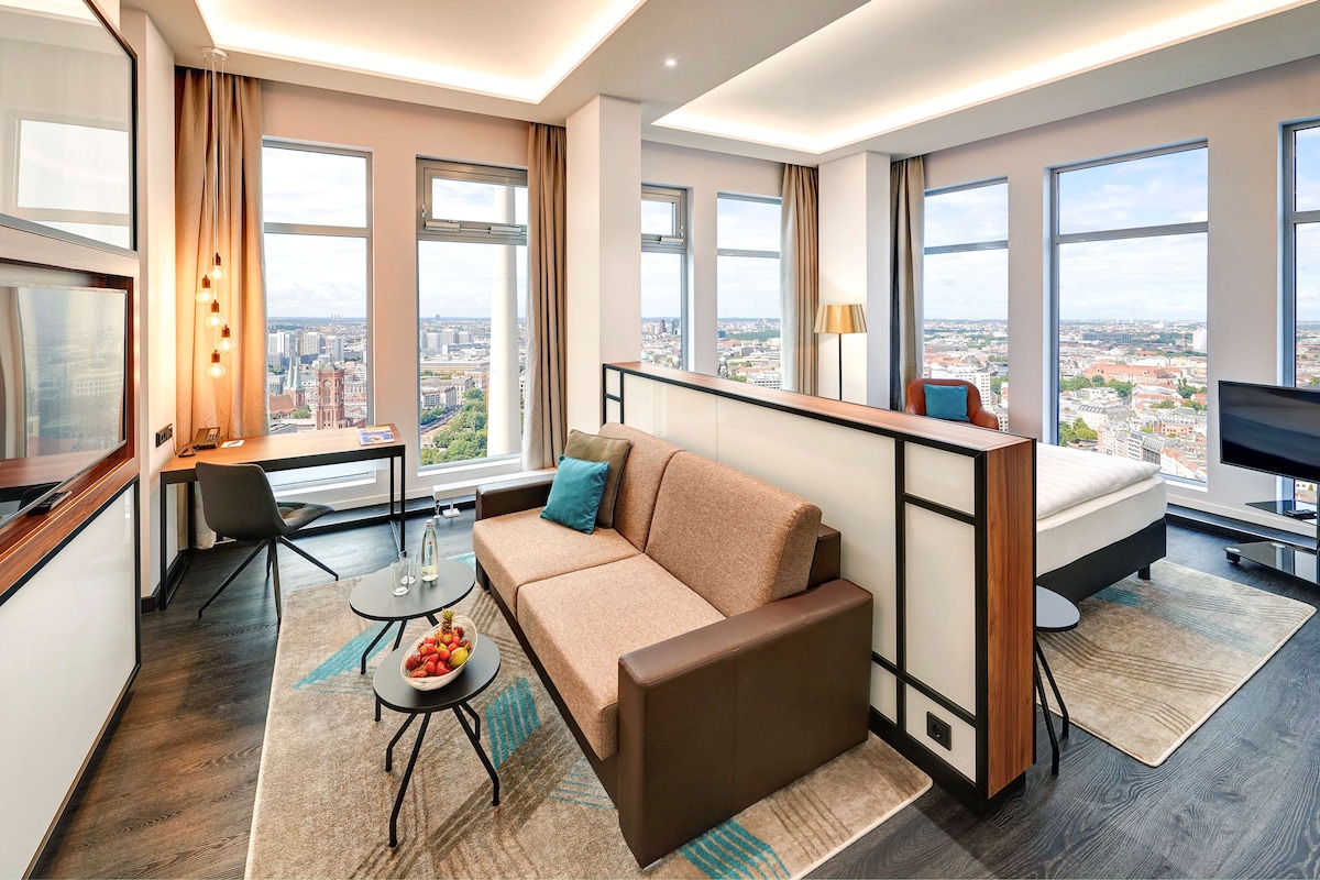 Az utazási idő autóval körülbelül 30-40 perc a forgalomtól függően. Tömegközlekedéssel a reptérről közvetlen vonatkapcsolat van az Alexanderplatzra, amely körülbelül 30-35 percet vesz igénybe. A szálloda több mint 1000 szobával rendelkezik, amelyeket modern stílusban rendeztek be. A közlekedési kapcsolatok kiemelkedően jók, mivel az Alexanderplatz tömegközlekedési csomópont, amely U-Bahn, S-Bahn, villamos- és buszjáratokkal köti össze a város különböző pontjait.
