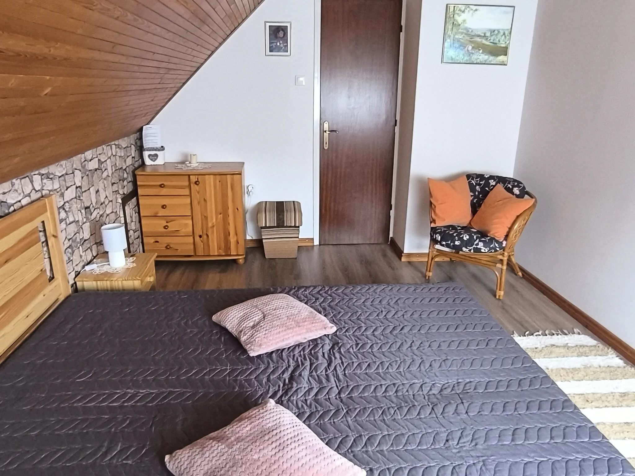 Apartmanunk a Szent György hegy lábánál ,Balatontól 5km-re található kisfaluban Kisapátiban található. Családiház tetőteréből lett kialakítva külső feljáróval. A szobák ablakából a világhírű Bazaltorgonákat lehet látni, az apartmanhoz tartozó teraszról a Csobáncot. Nappali-étkező ,zuhanyzós fürdő, jól felszerelt teakonyha,(Mikró, víz forraló, kávéfőző Stb.) 2x2 személyes szoba szolgálja a vendégek kényelmét. A nagy udvaron lehetőség van az autóval való parkolásra (kamerával megfigyelt),a gyerekeknek játszásra(Fészekhinta, lombház, homokozó)míg a gyerekek játszanak a felnőttek a kerti bútorokon beszélgethetnek pihenhetnek. Neves borászatok könnyen megközelíthetők pár perc sétával. Taberna Infinitó-Tapas&Grill Bár .Búzalelke pékség. Párperces autó úttal elérhető az egyedi hangulatú Liliomkert piac. Tapolca 5km ahol Tavasbarlang, Malomtó és még sok látni való található. A Balaton 5km ahol fürdőzésre és hajókázásra is van lehetőség. A tulajdonosok(házaspár) a helyszínen laknak .Az apartman és a hozzá tartozó terasz nem dohányzó(dohányozni az udvaron kijelölthelyen lehet)Kérem foglalási szándékukat ennek tudatába tegyék.