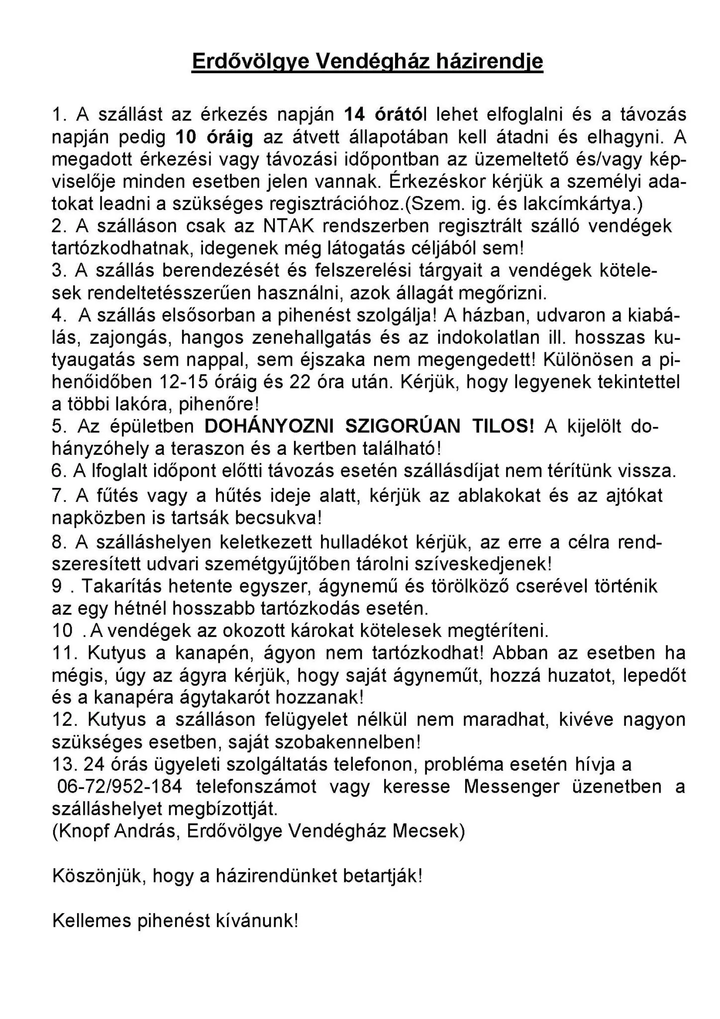 Ágynemű, konyharuha, kéztörlő, fürdőlepedő, hajszárító, vasaló, mini vasalóállvány, könyvek, társasjátékok a felszereltség részét képezik