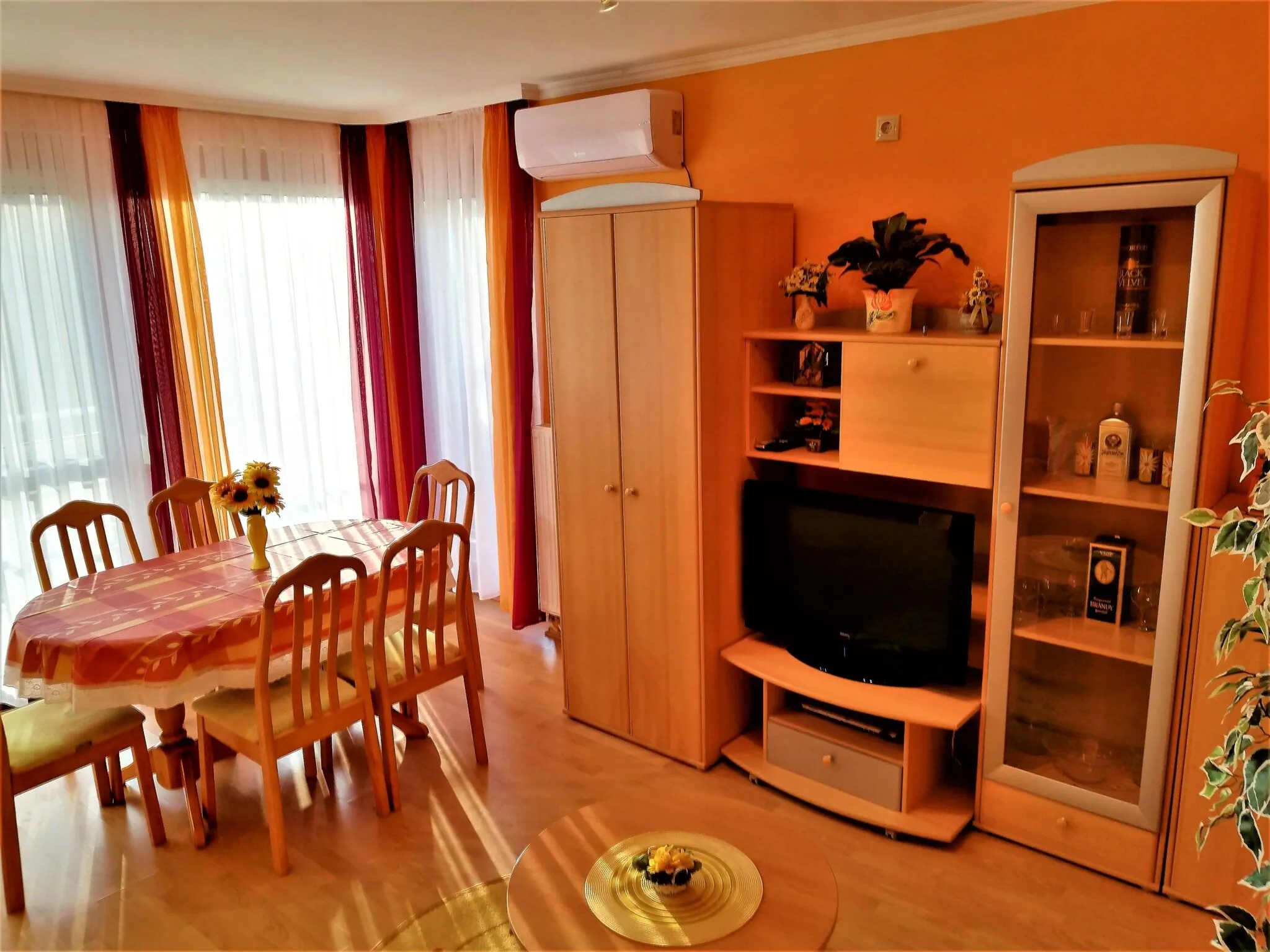 Az apartman amely 2-6 fő elhelyezésére alkalmas, 4 helyiségből áll , 1 amerikai konyhás nappali 2 személyes kinyithatós ággyal, 2 hálószoba franciaággyal, 1 fürdőszoba zuhanyzóval,wc-vel .