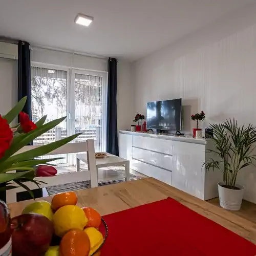 Nappali: kanapé (2 személyes ággyá alakítható), asztal, komód, LED-tv, wifi, erkély.
