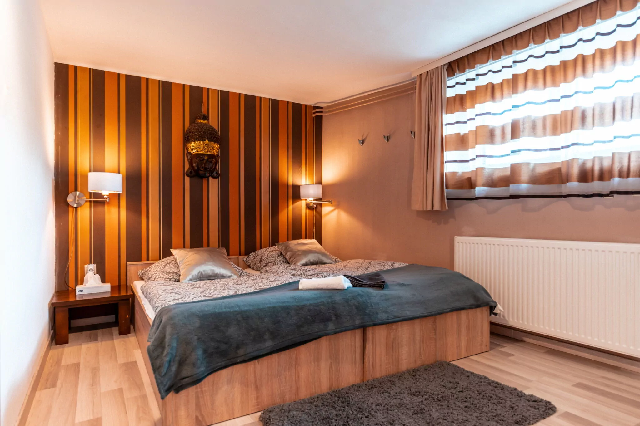 A szállás 600 méterre a belvárostól, nagyon nyugodt, kertvárosi övezetben az Alsólőverekben található.