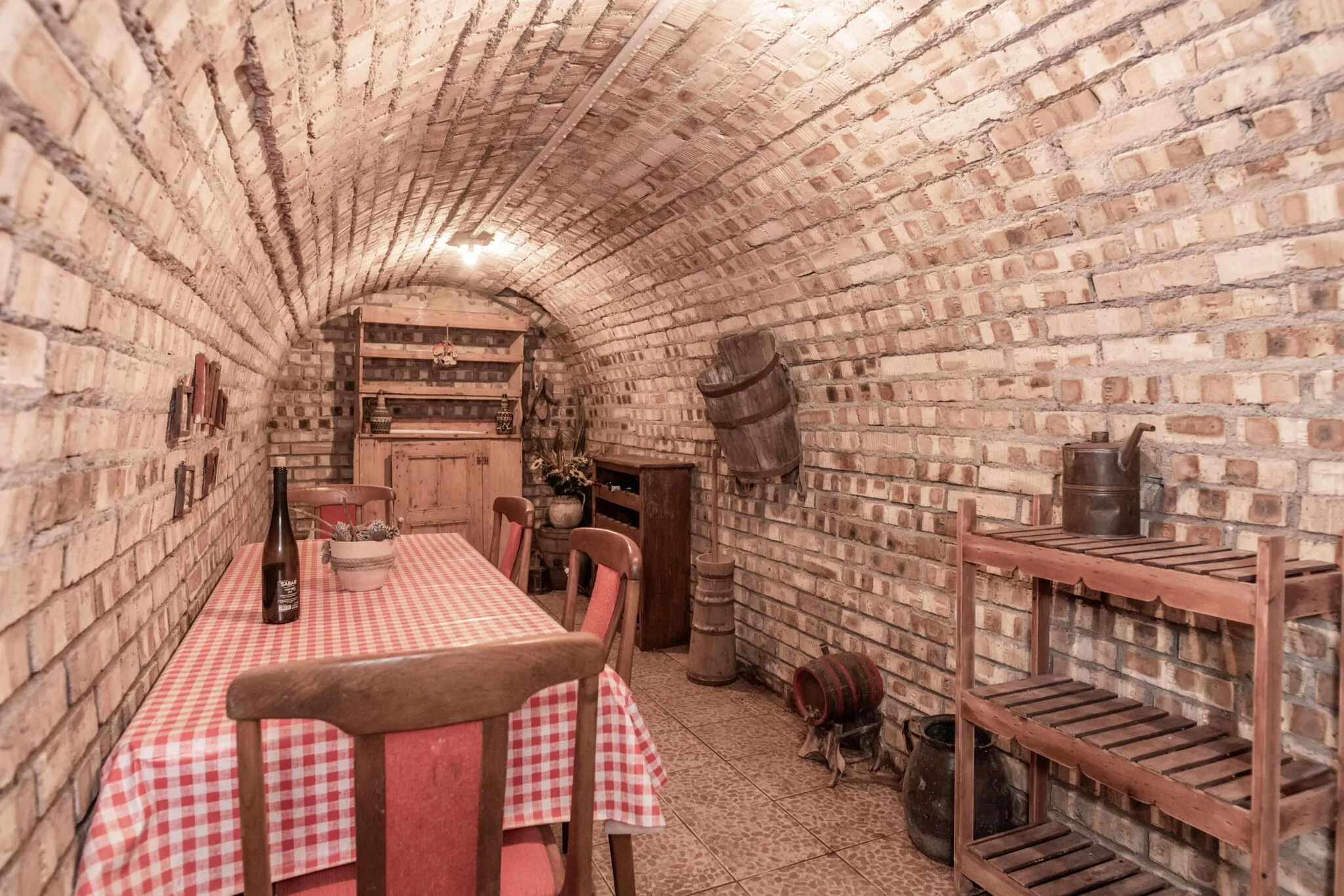 Az épület alatt egy borospince került kialakításra, ahol a vendégek összeülhetnek egy pohár bor társaságában.