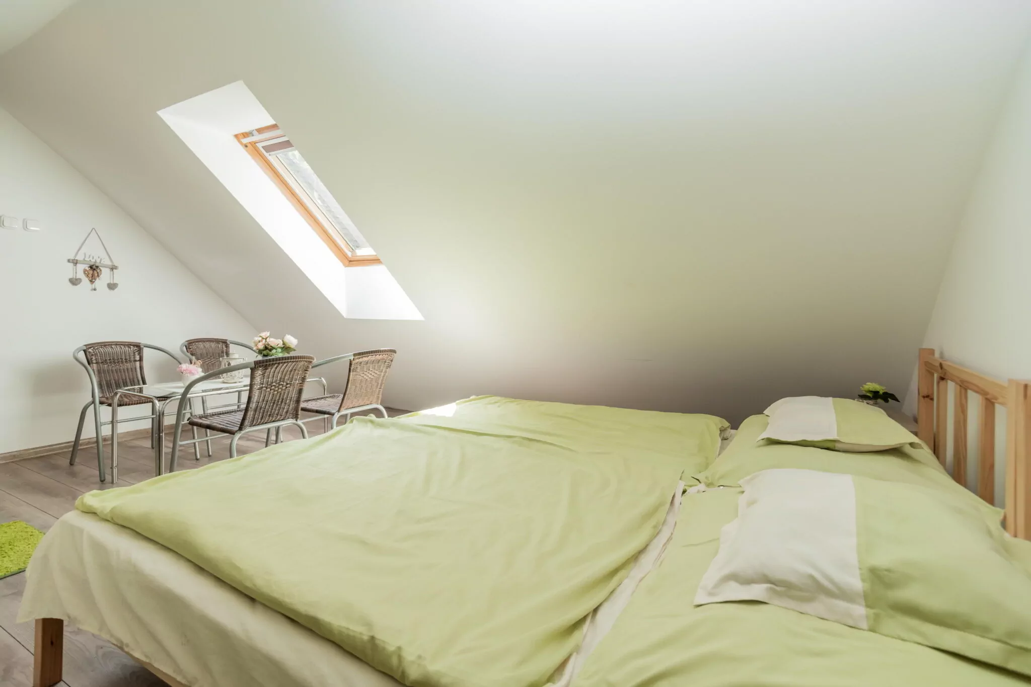 A házhoz egy külön bejáratú apartman tartozik, amely 4 ágyas szobával, fürdővel és előtérrel lett kialakítva.