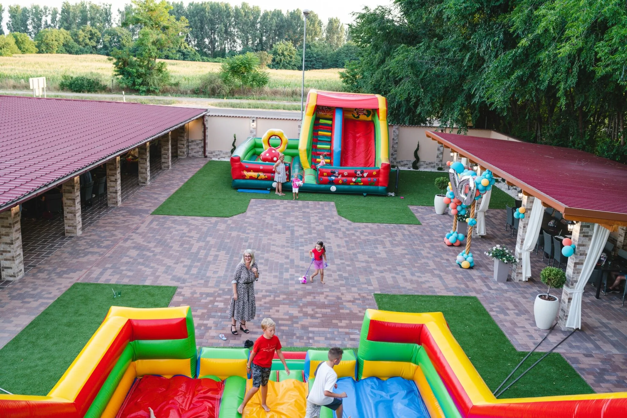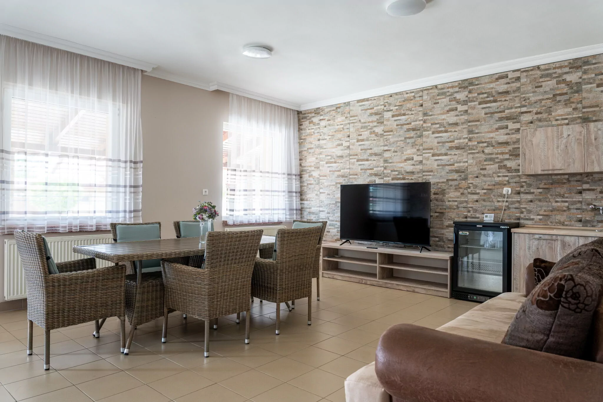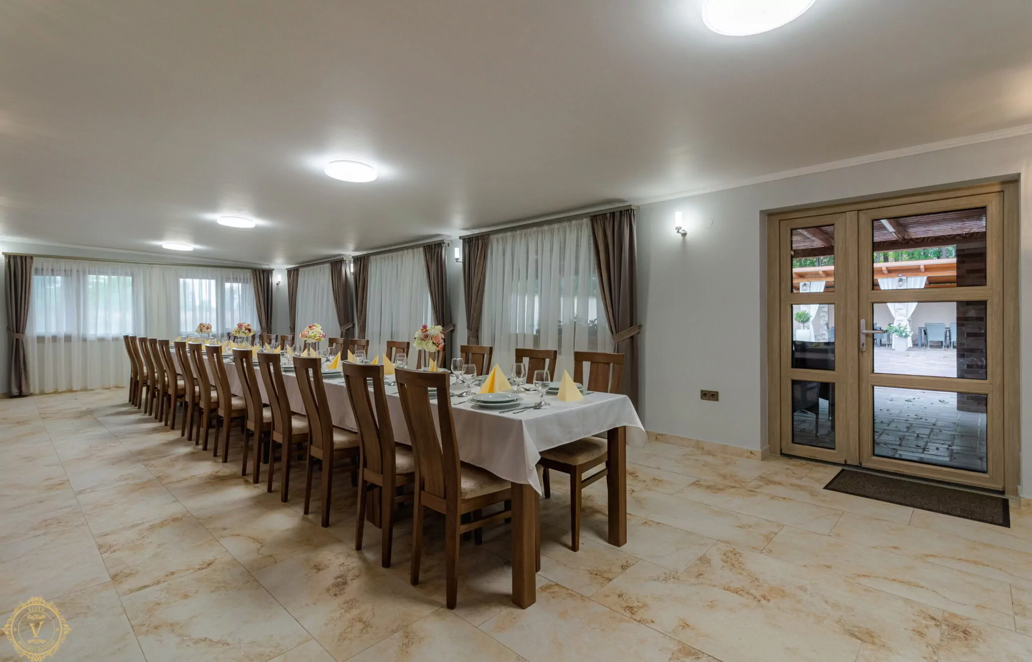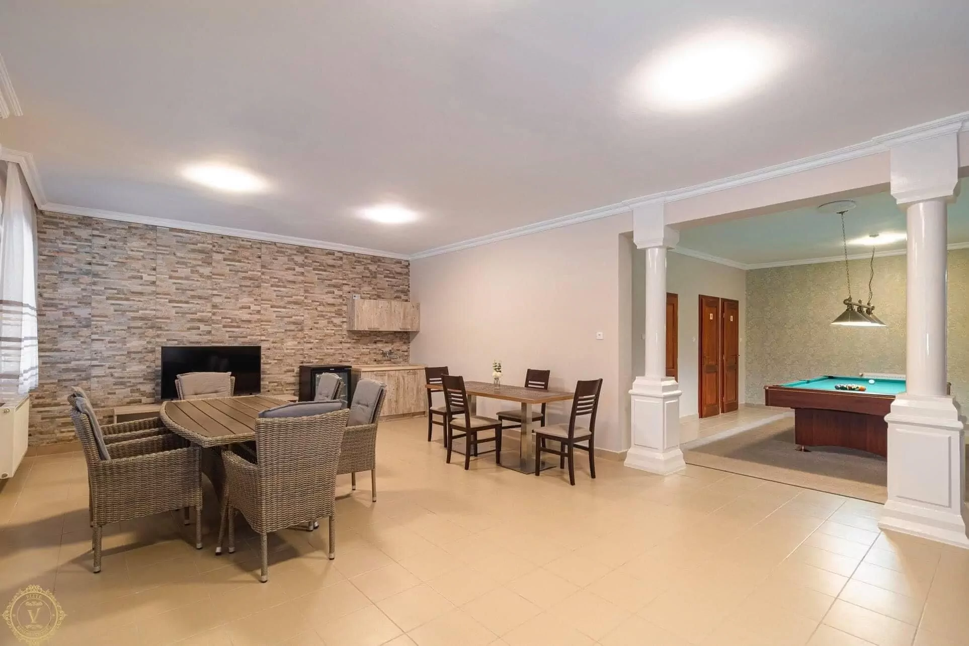 A panzióhoz tartozó, közös használatú “nappali” akár esősebb napokon is alkalmas a családi kártyapartyk, társasjátékozások lebonyolítására, vagy épp baráti társaságok számára, a külön teremben található biliárd asztalnál pedig kicsik és nagyok egyaránt megmutathatják játéktudásukat. A rendezett, zárt udvar a nyáresti beszélgetések remek helyszíne lehet. A foglalásokhoz kérhető reggeli, félpanzió vagy akár teljes ellátás is. A panzió mellett található egy 160 fős, szintén új építésű rendezvényház is, mely esküvők, céges rendezvények, családi-baráti események számára nyújt igényes, minőségi helyszínt, nem zavarva a panzióban megszállókat. Akik pihenés céljából választják panziónkat, azoknak érdemes átlátogatni a határon is, hiszen a román oldalon számos látnivaló és szórakozási lehetőség várja Vendégeinket! A Fekete Sas Palota és az Unirii tér, a Római Katolikus Püspöki Palota és a Székesegyház, a Félixfürdő, a Nagyváradi Állatkert vagy épp a Sebes-Kőrös partja is felkerülhet a meglátogatandó helyek listájára.