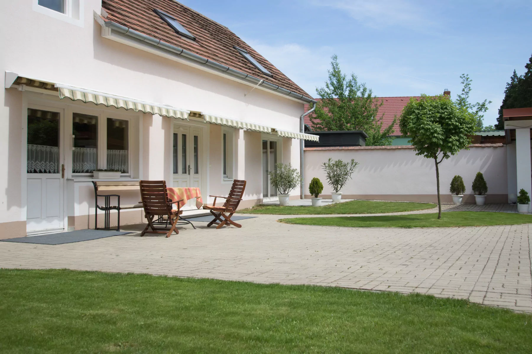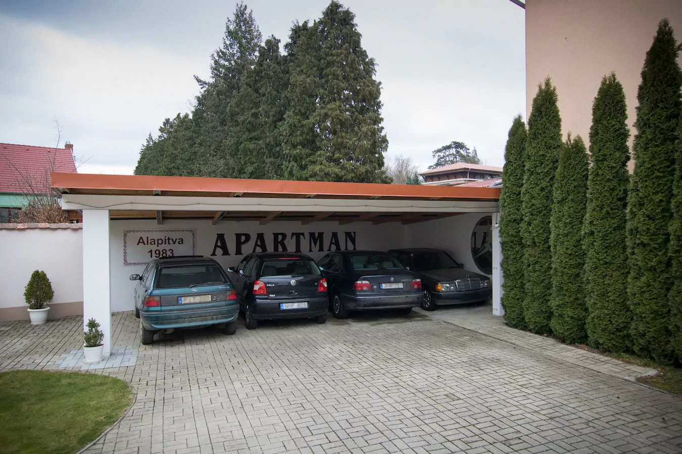 Az udvarban parkolási lehetőség (nyitott, fedett).