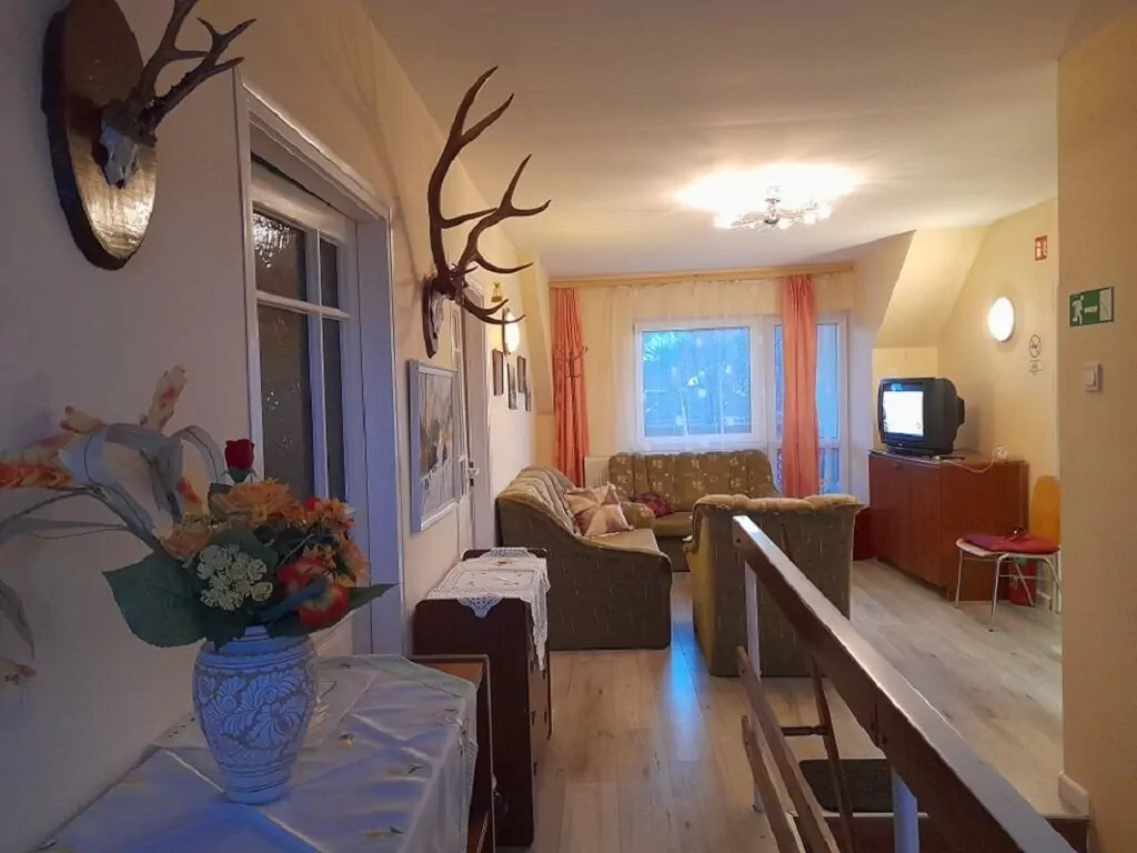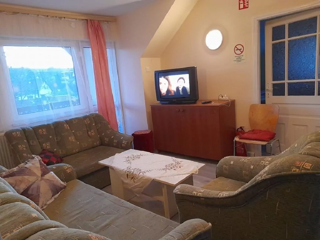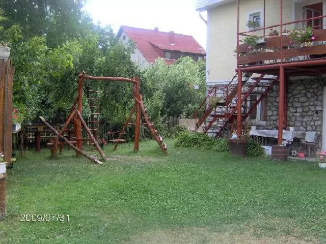 Elhelyezés: 3 vendégszoba 9 fő részére. Tetőtéri classic franciaágyas rózsaszín szoba.Tetőtéri family négy ágyas sárga-kék szoba és tetőtéri három ágyas harmónia zöld szoba. A gyerekek számára pótágy biztosított. Az étkezőhelyiség közös, felszerelt konyhával. Tévészoba, terasz és két erkély tartozik hozzá.
