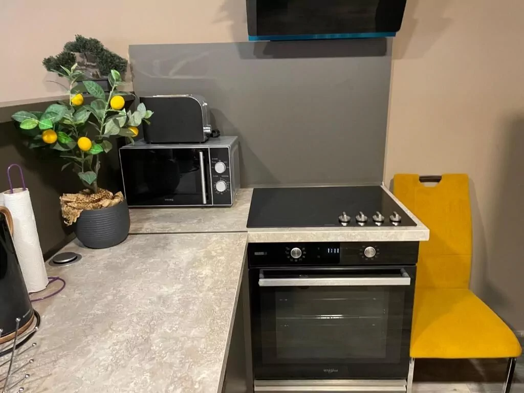 Az apartmanban 1 hálószoba, síkképernyős műholdas TV és mikrohullámú sütővel felszerelt konyha, mosógép és zuhanyzóval ellátott fürdőszoba található.