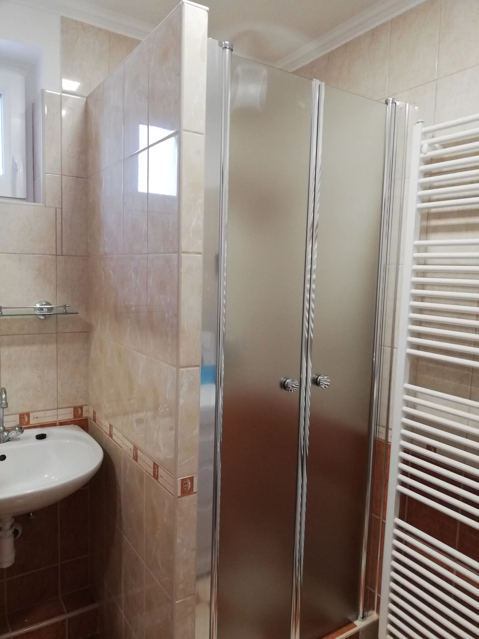 A 3 db szobához egy zuhanyzós fürdőszoba és egy konyha tartozik teljes felszereltséggel.