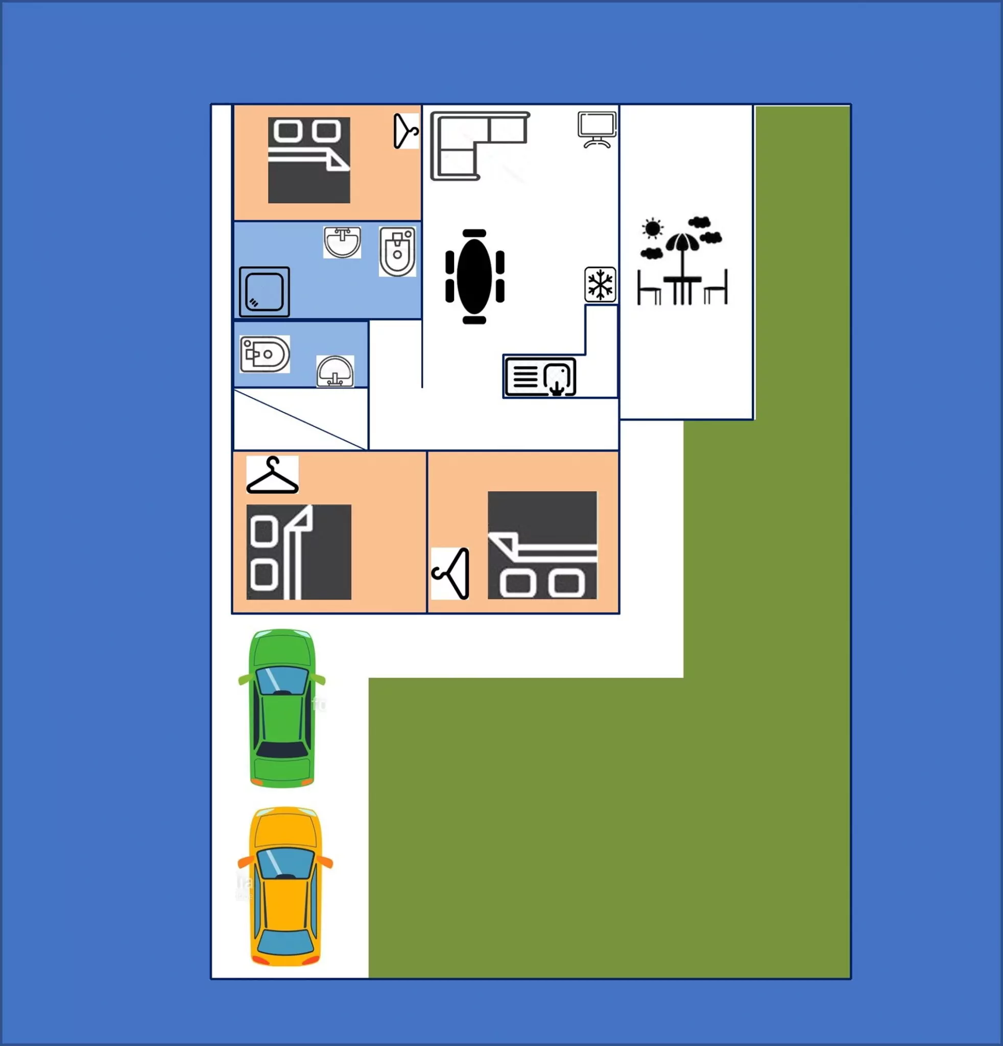 Siófokon, az Aranypart keleti végén nyugodt, családiházas részen ajánljuk komfortos, modern új bútorokkal berendezett 3 hálószobás nyaralónkat. A kertben a vendégek pihenését kerti bútorok, napágyak biztosítják. Ideális nagycsaládosoknak, 6-8 fős baráti társaságoknak. Az apartmant bérlő társaságban legalább 1 nagykorú, 18. életévét betöltött személynek kell lennie. A ház gyerek és bababarát (ágy, etetőszék, játék), riasztó vigyáz a biztonságra. A ház teljes körű ózonos fertőtlenítésen esik át, így a következő vendég egy mikróba (baktérium, vírus, gomba, atka, stb) mentes nyaralóban, biztonságosan tudja eltölteni szabadságát. Háziállatokat nem tudunk elszállásolni. Az udvarban 2, a ház előtti részen további 2 autó ingyenes parkolására van lehetőség. A Szabadisóstói vasútállomás 800 méterre található, így a Siófok városközpont vonattal is elérhető (2 megálló). A 850 méterre található Balatonpart pár perces kellemes sétával megközelíthető (lásd a térképet a képgalériában). Több, ingyenes szabadstrand is van a közelben, ahol több büfé és játszótér is van. Szórakozás és vásárlás céljából Siófok belvárosát ajánljuk. Az 5 km-re lévő központ autóval és vonattal is kényelmesen elérhető. A városi kikötőből vagy Szántódról számtalan hajó és komp indul az északi part közkedvelt kirándulóhelyeire. Bicikli útvonal a közelben, a Balatonkiliti reptér 10 km-re van. Autóval az M7-es autópályáról a 98-as lehajtó után néhány perc alatt elérhető, vonattal a Szabadi-Sóstó megállóban kell leszállni. Leány és legénybúcsú nem tartható a szálláson. Háziállatot nem hozható be. Érkezéskor a vendégek kötelesek átadni adatrögzítésre a személyazonosításra alkalmas (fényképes) dokumentumaikat, a biztonsági letét díját és az idegenforgalmi adó díját készpénzben. A vendégek az apartmant csak jelen feltételek együttes teljesülése után foglalhatják el. A biztosítási letétet miután a tulajdonos meggyőződött arról, hogy a szállásban nem keletkezett kár, annak teljes összegét a szállás elhagyása előtt készpénzben visszatéríti a vendégnek. Az idegenforgalmi díj 1,5 Euro/fő/éj vagy 550 Ft/fő/éj. Minden 18 év feletti személy után meg kell fizetni.