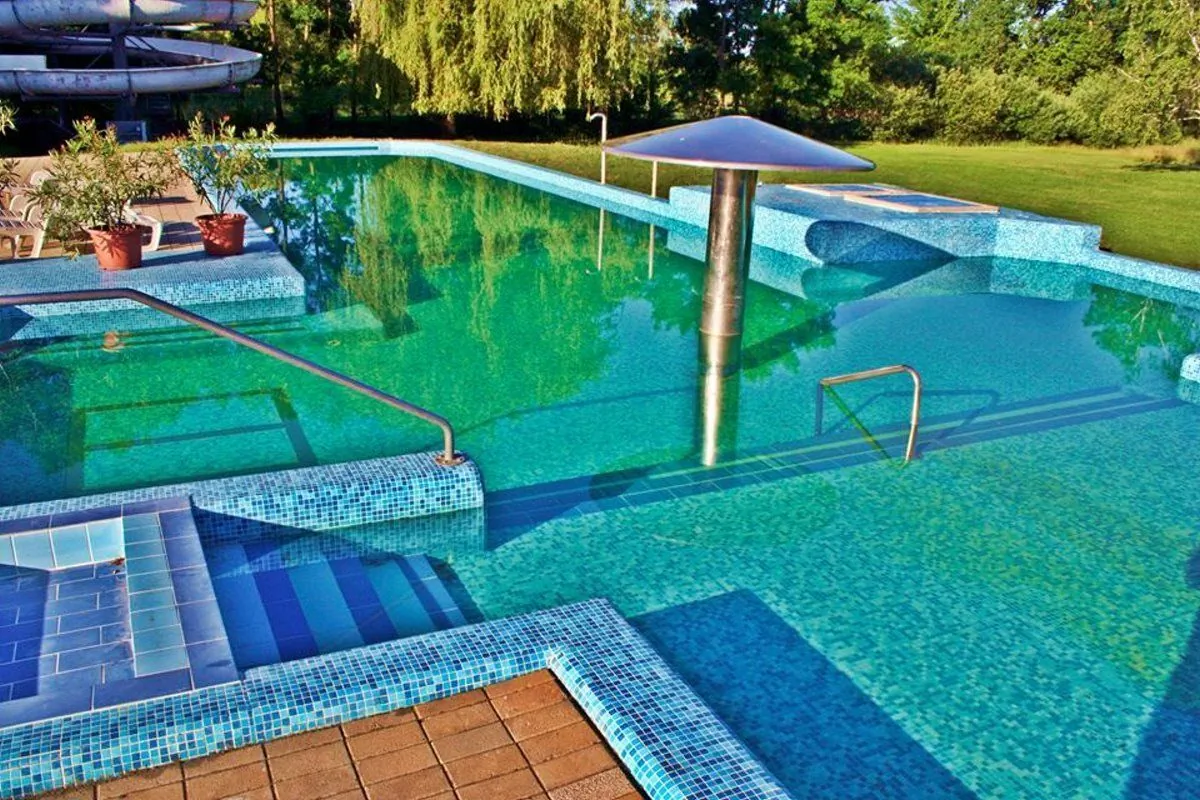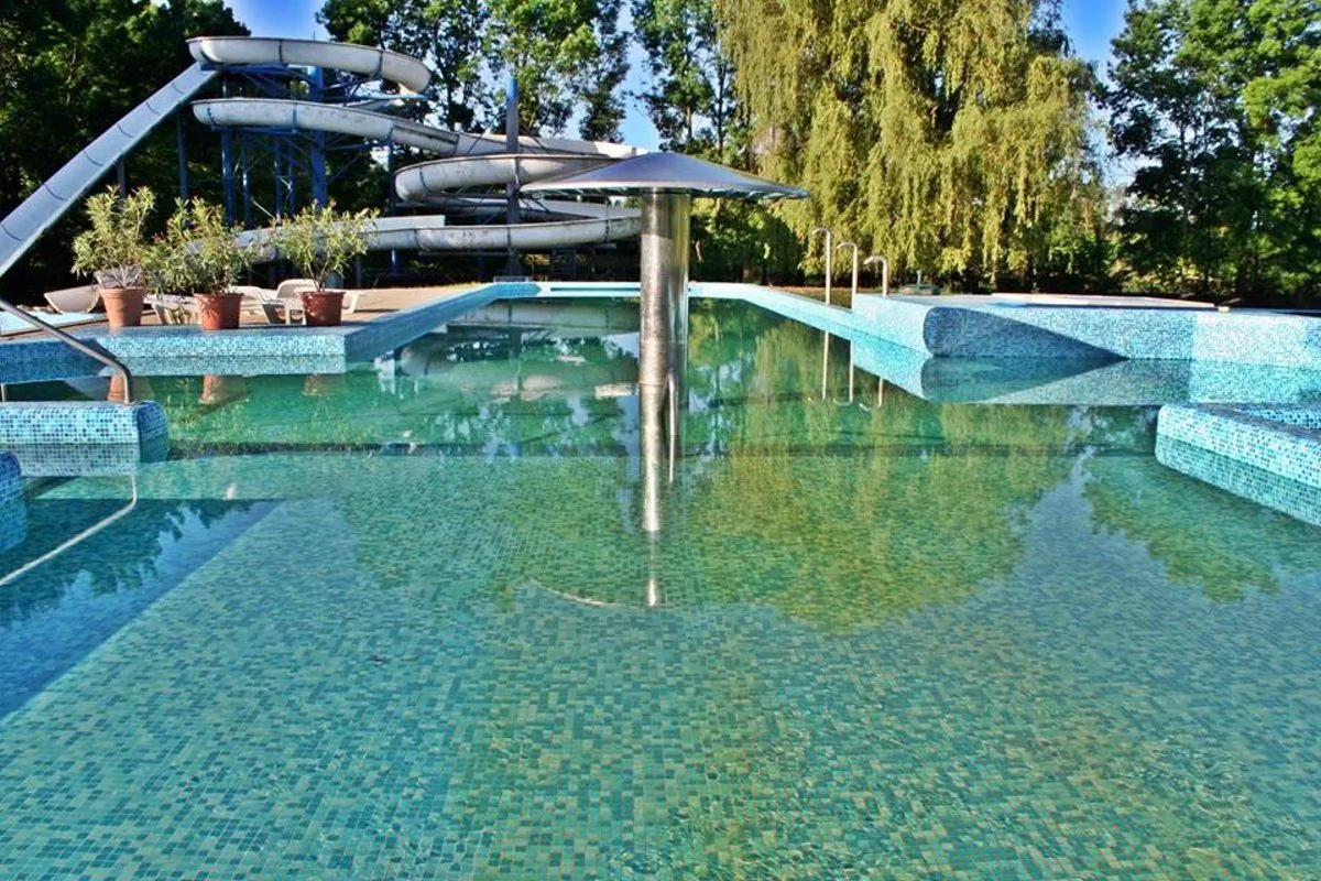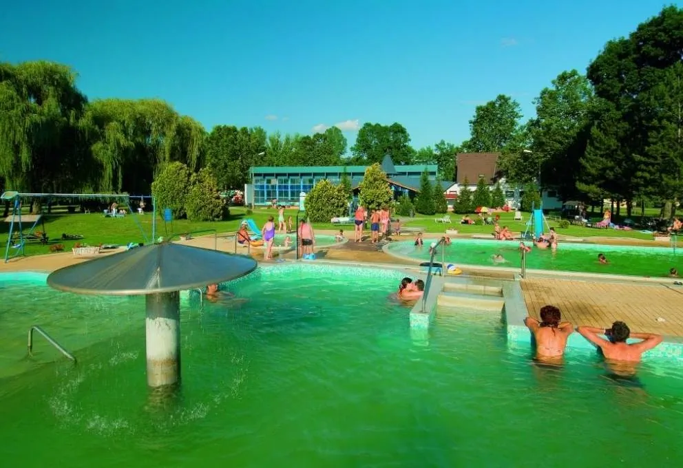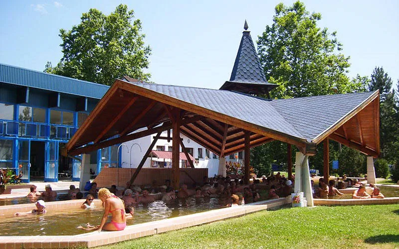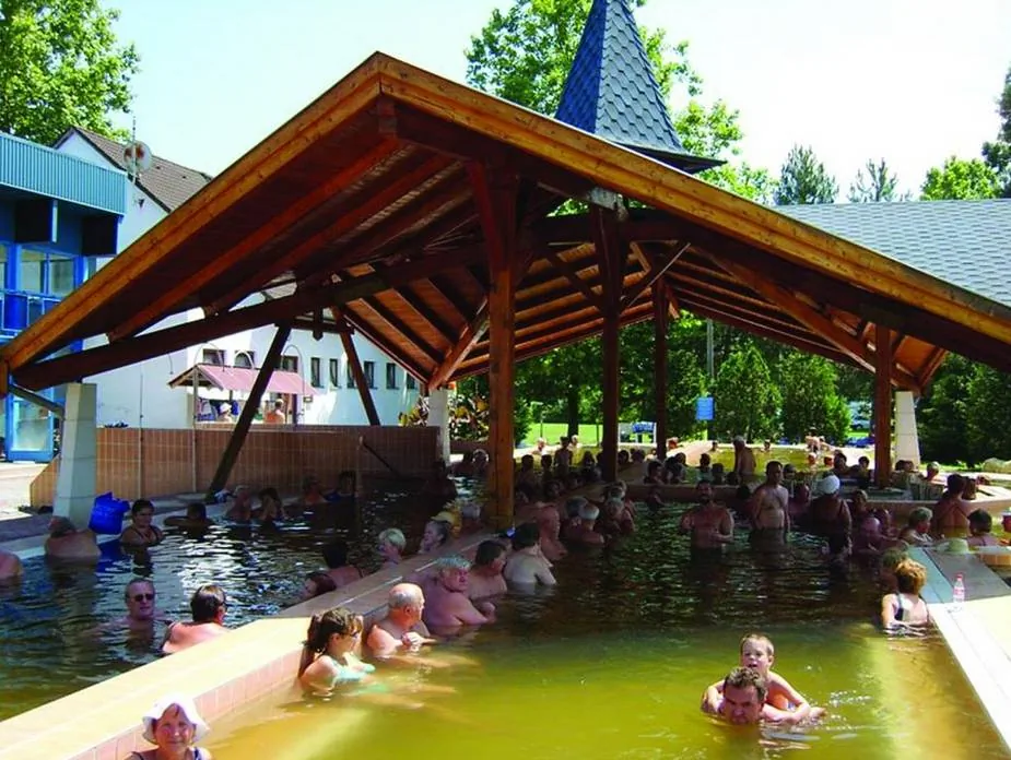 A teraszokról gyönyörű kilátás nyílik a gyógyfürdő területére.