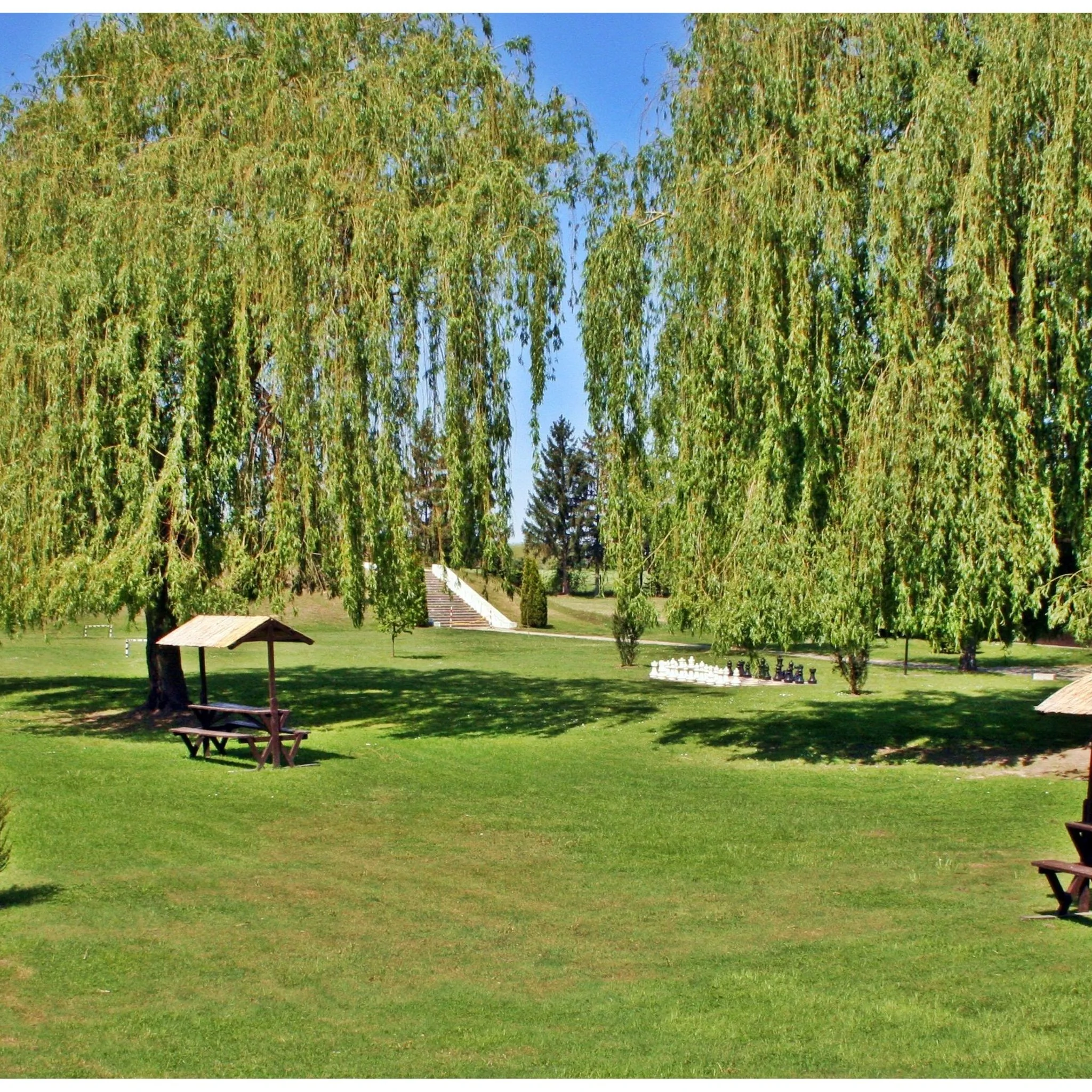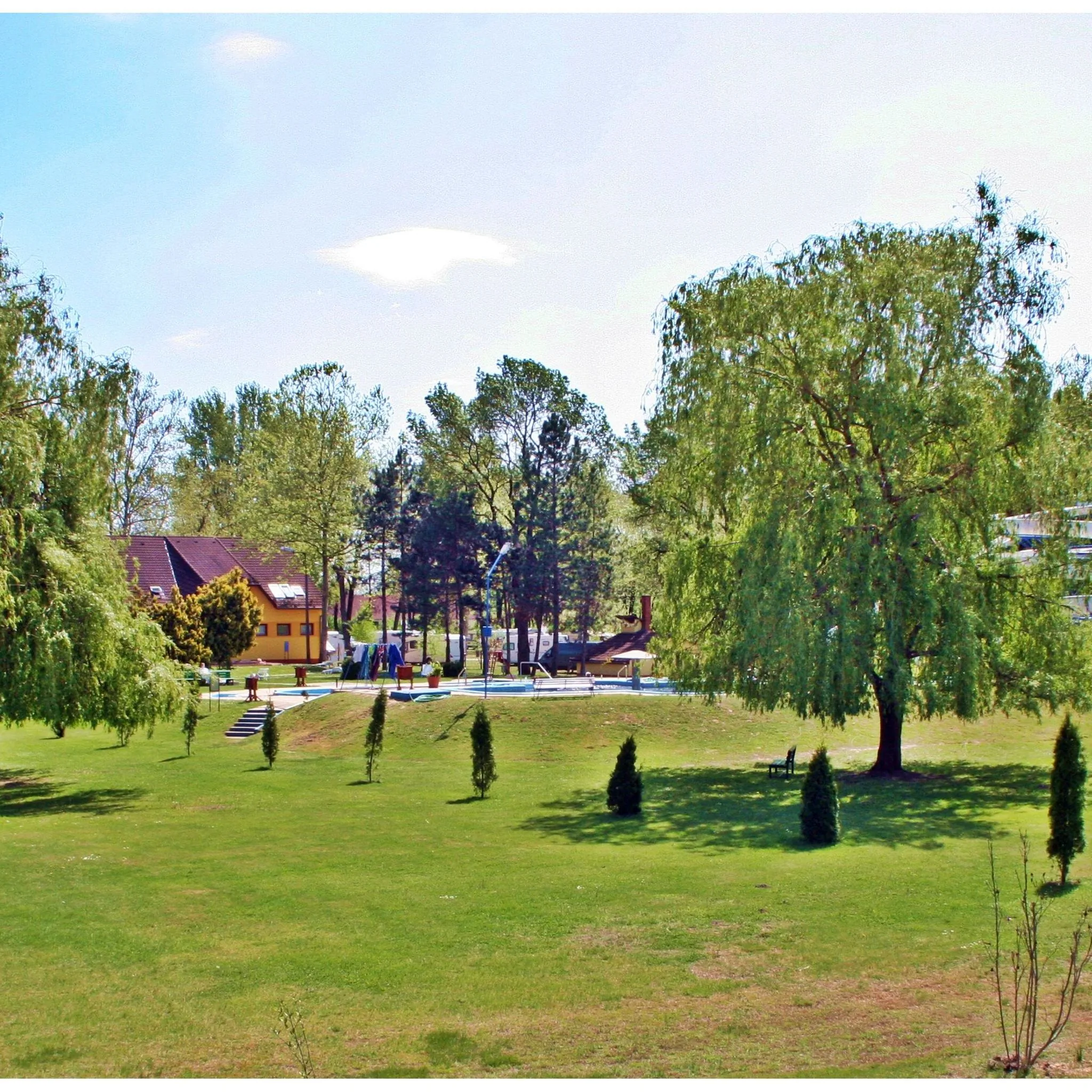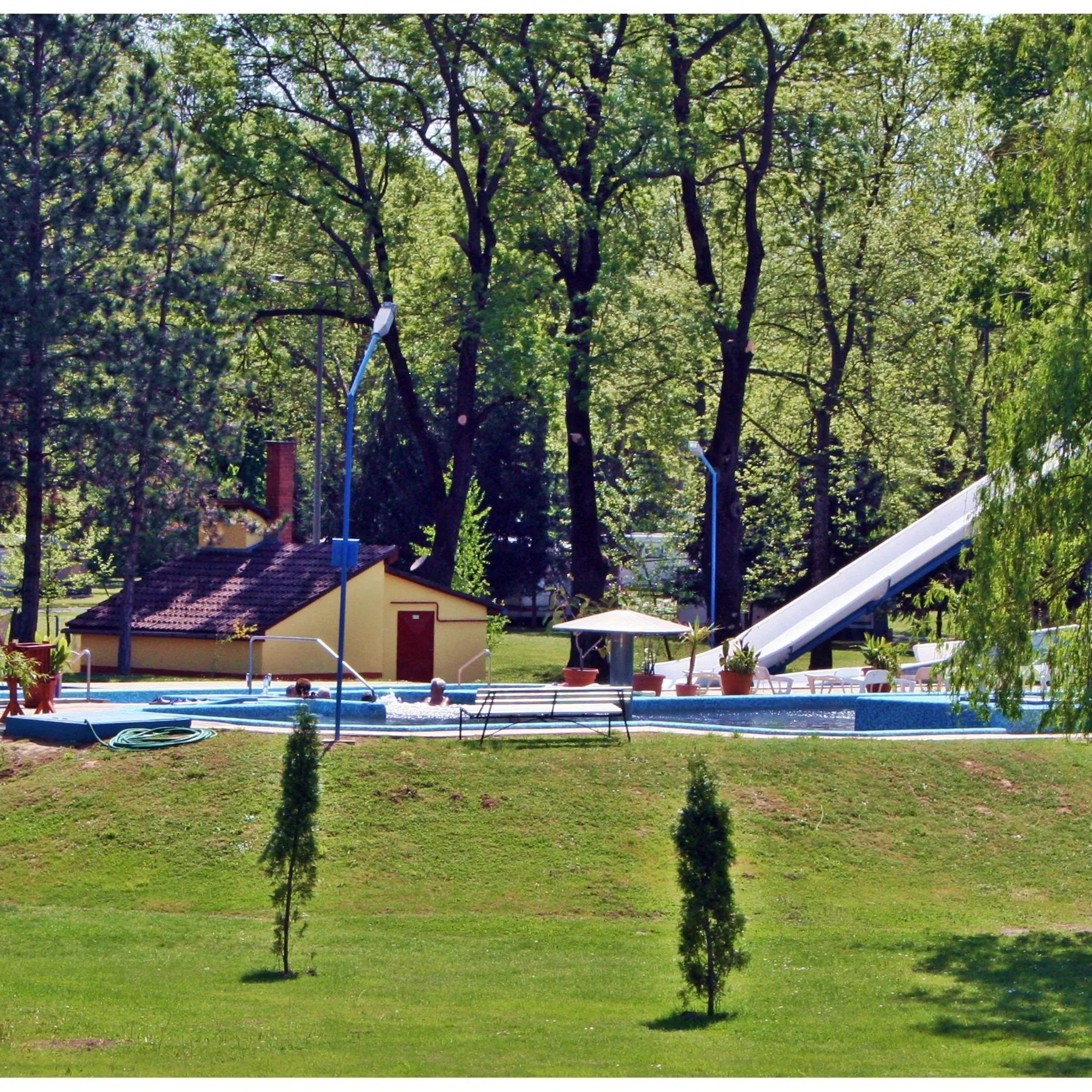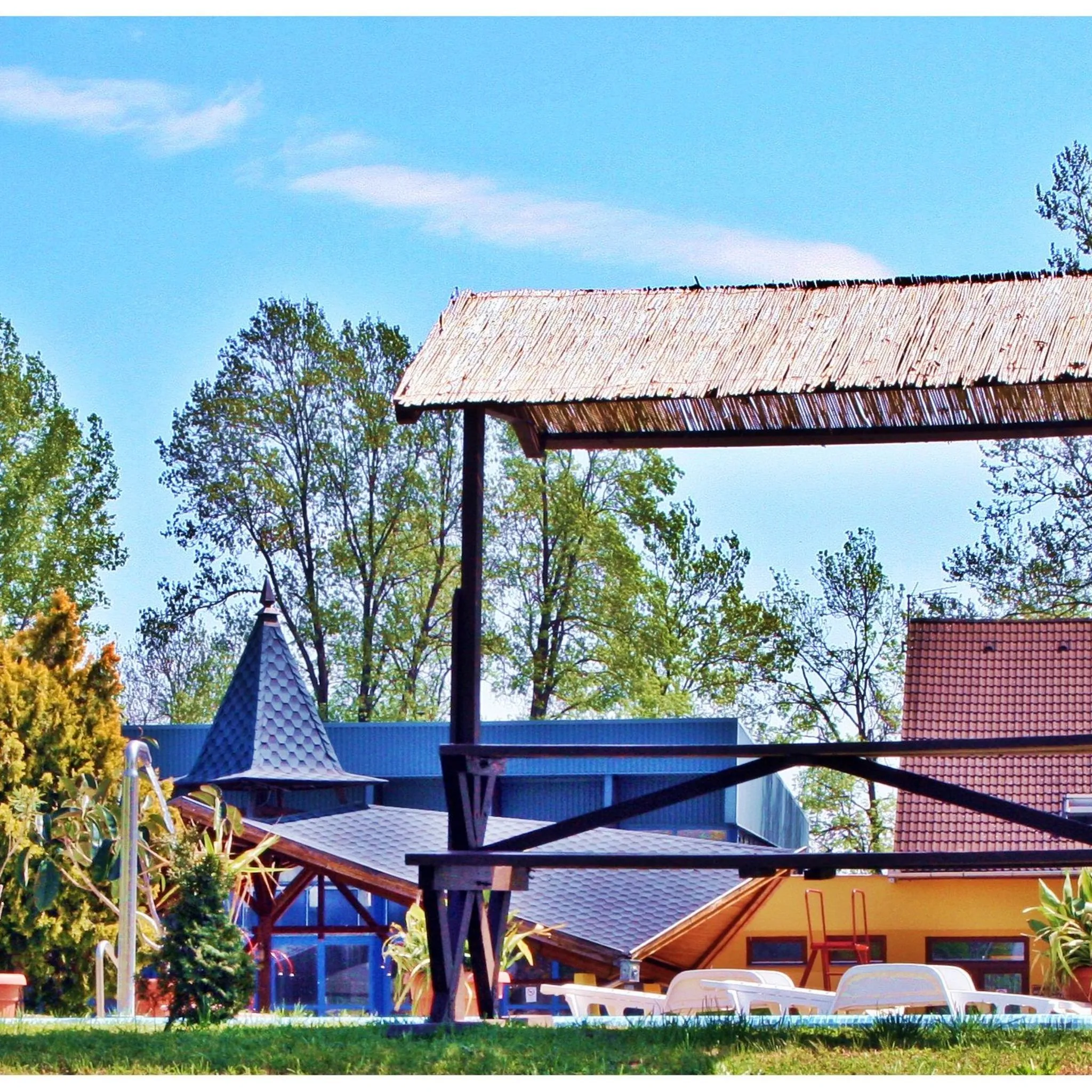 A teraszokról gyönyörű kilátás nyílik a gyógyfürdő területére.