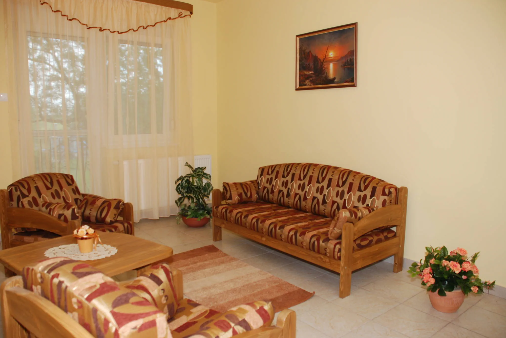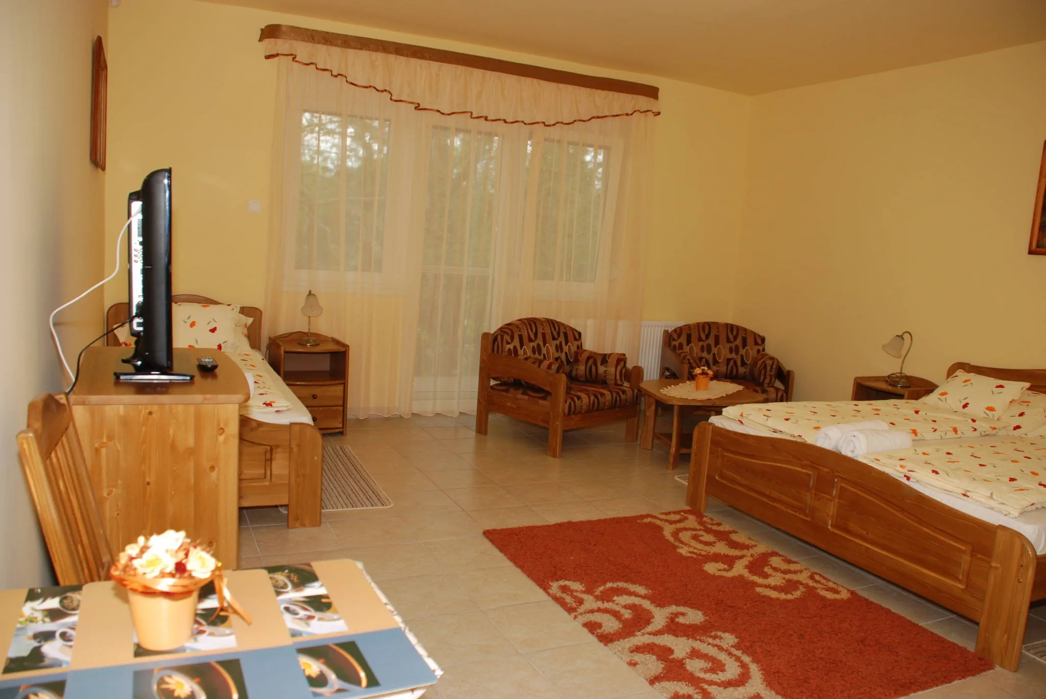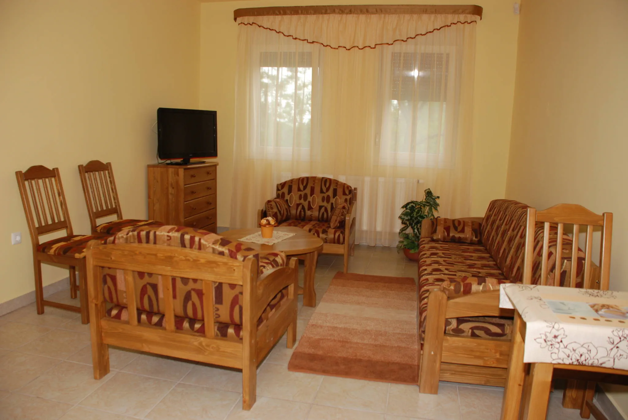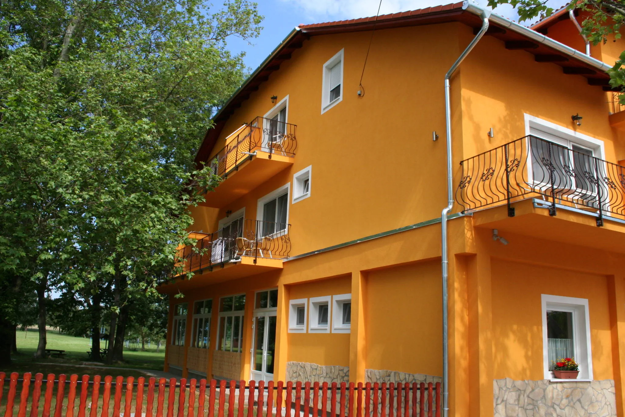 A földszinten 3 db 2 férőhelyes, az I. emeleten 6 db 2 személyes 2 db 3 személyes és 1 db 4 személyes apartman várja vendégeinket.