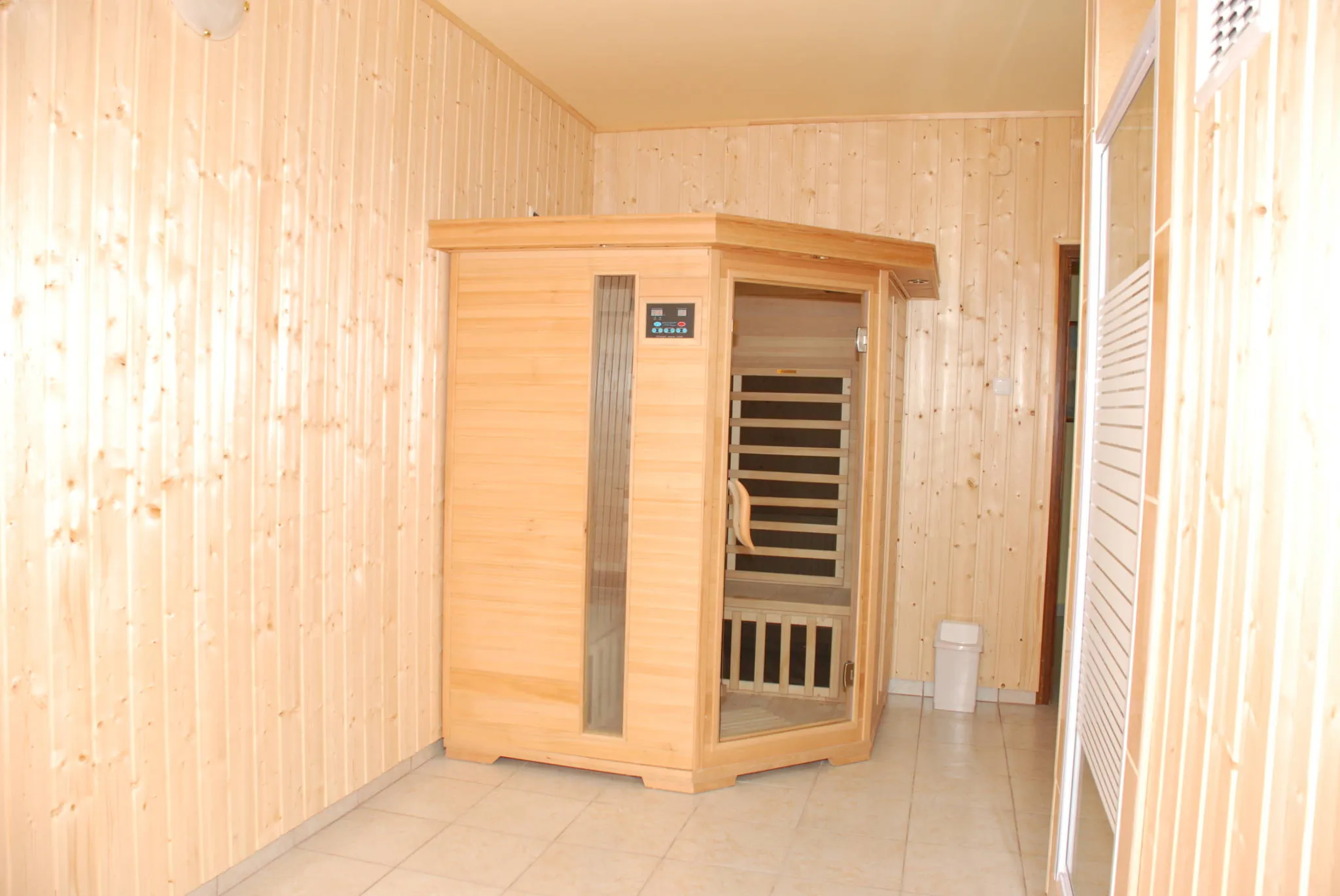 A II. emeleten 3 db 2 személyes és 1 db 4 személyes apartman, a szauna és szolárium található.