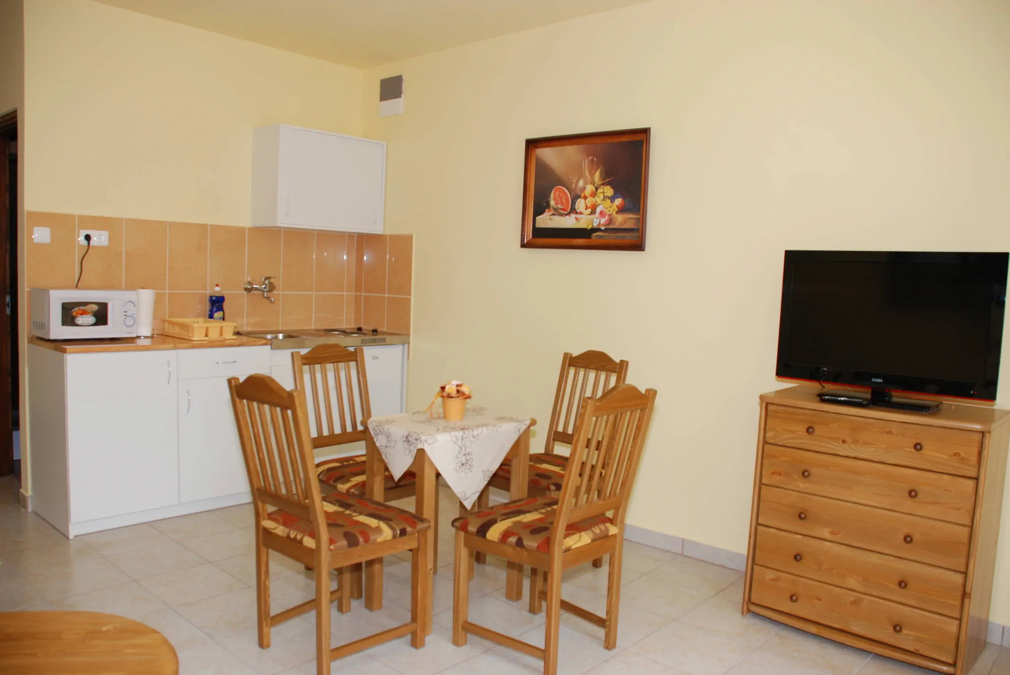 Valamennyi apartman felszerelt minikonyhával rendelkezik.