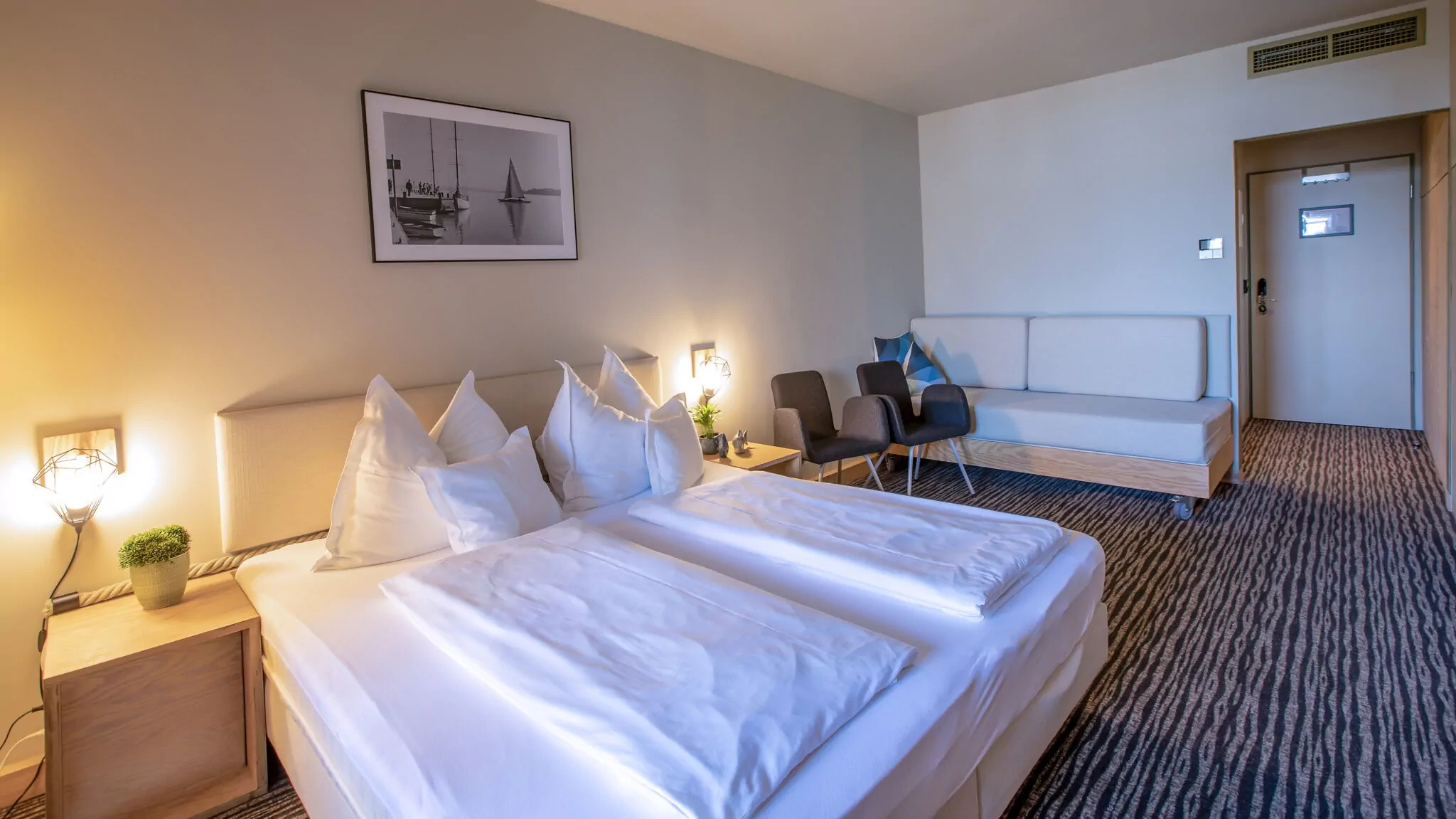 Kényelmes tágas, egybe nyitható szobákkal, családi nyaraláshoz, de egy romantikus hétvégéhez is kiváló célpont. Minden szobánk saját, Balatonra néző terasszal rendelkezik, légkondícionált, zuhanyzós fürdőszobával, hűtővel valamint ingyenesen elérhető WIFI-vel és LED TV-vel felszerelt. Az első emelet szobái összenyihatók egy családi lakosztállyá, így könnyedén meg tudjuk oldani ha a család együtt szeretne pihenni. Mozgáskorlátozott vendégeink részére külön akadálymentesített szobát alakítottunk ki.