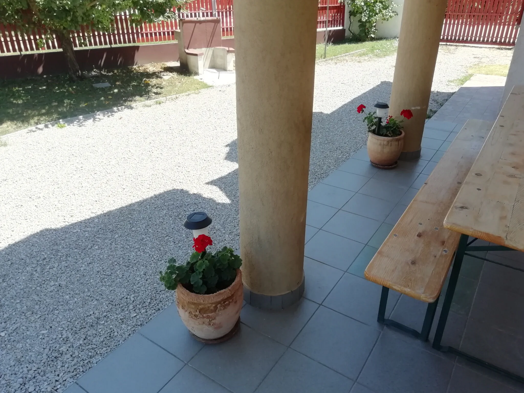 A távvezérlésű kapuval ellátott udvarban 5, közvetlenül a ház előtt 3 autó parkírozhat.