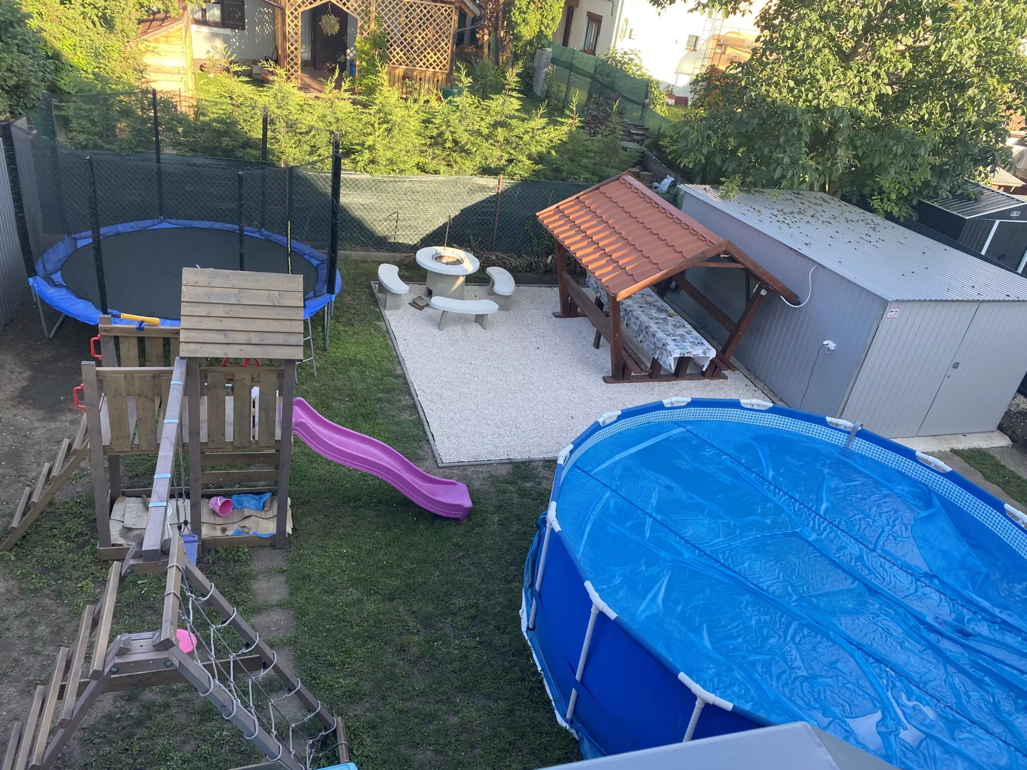 Az udvaron játszótér, trambulin, filagória és sütögető, bográcsozó hely is van.