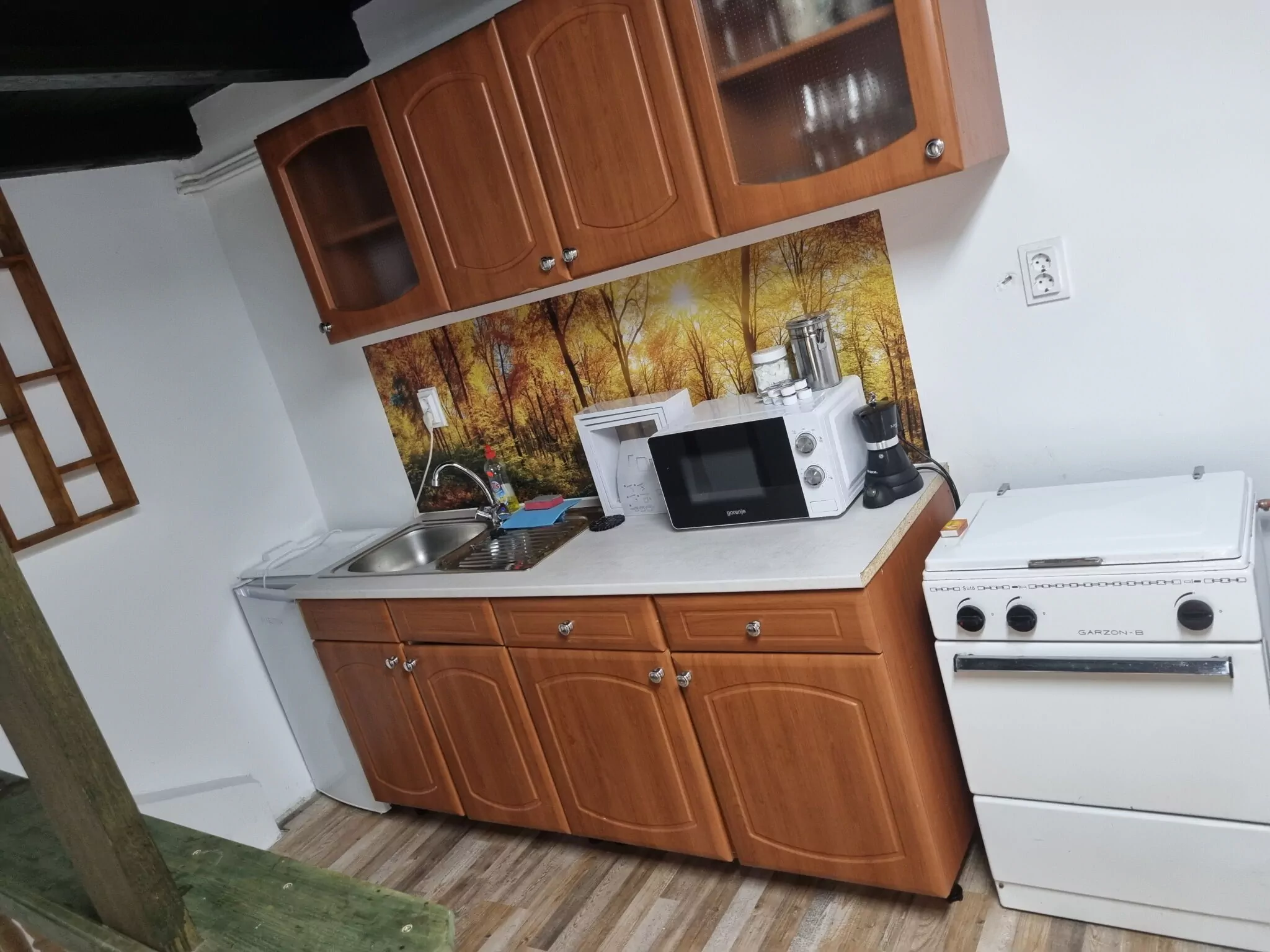 Az alsó szinten található konyha és étkező/nappali egy térben található, melyből lemehetünk a hangulatos boros pincébe, ahol a házigazda hagyja az ajándék környéken készülő bort.