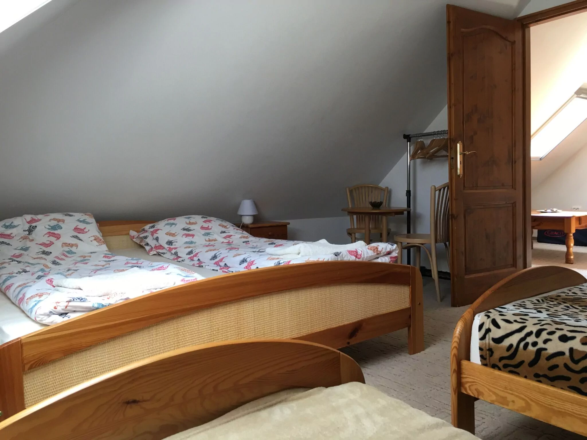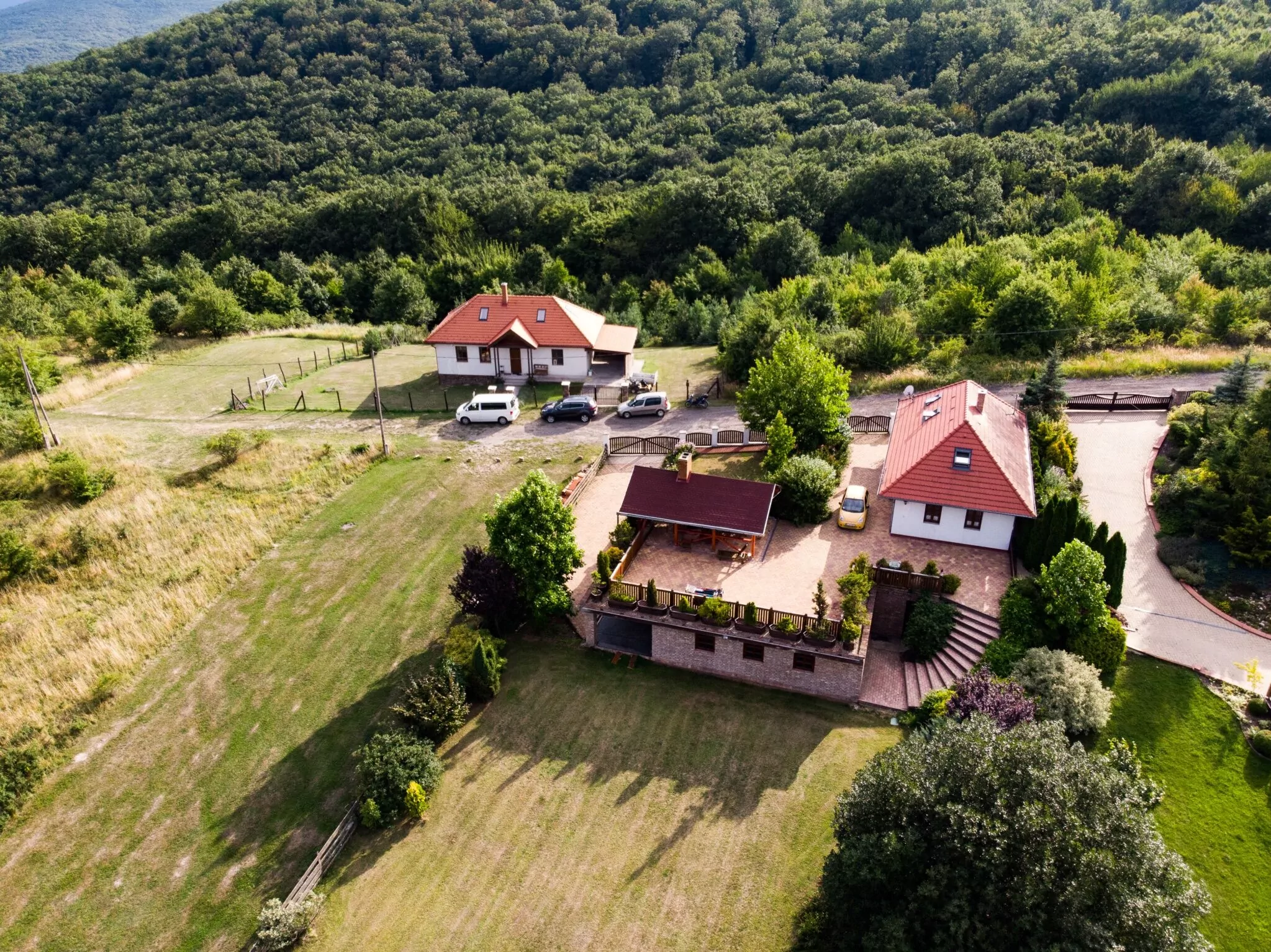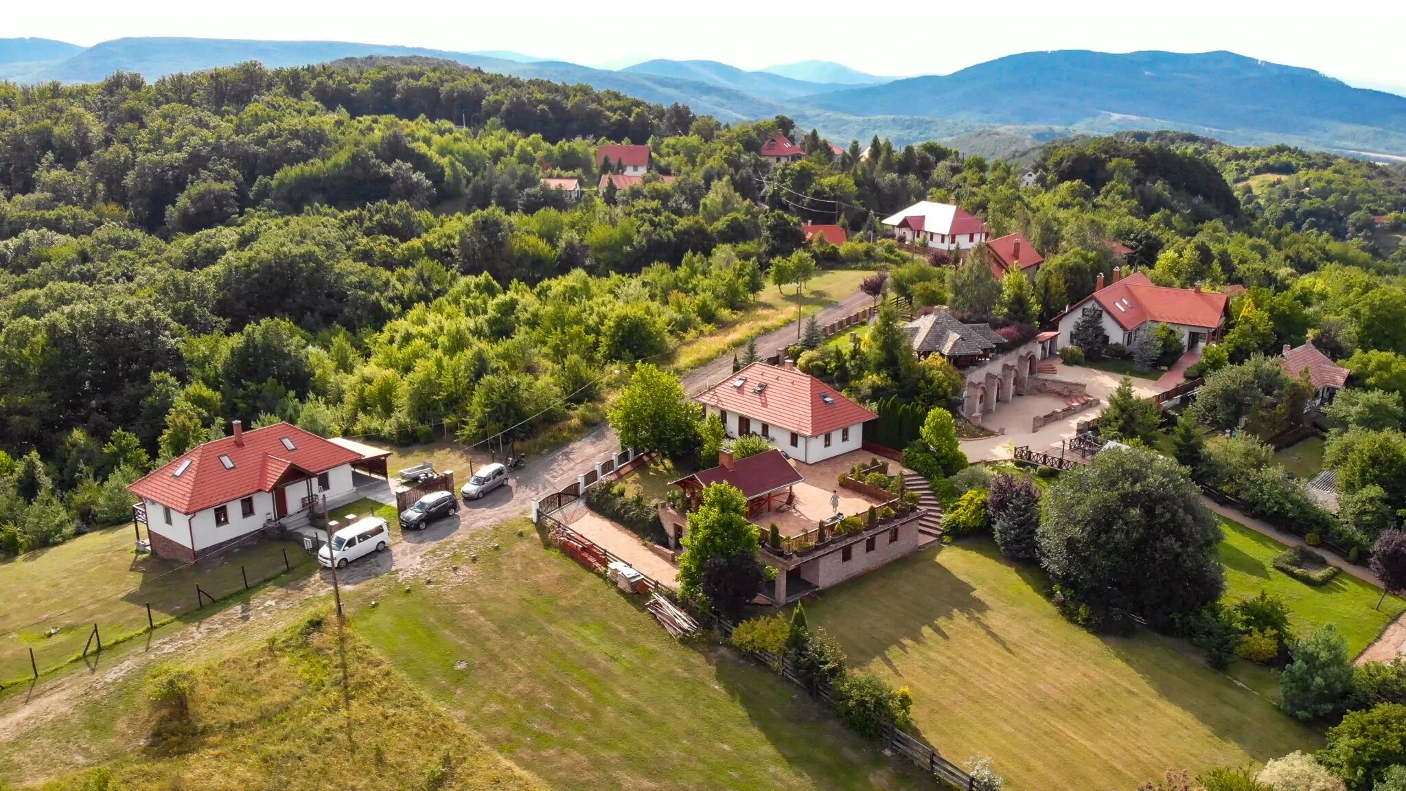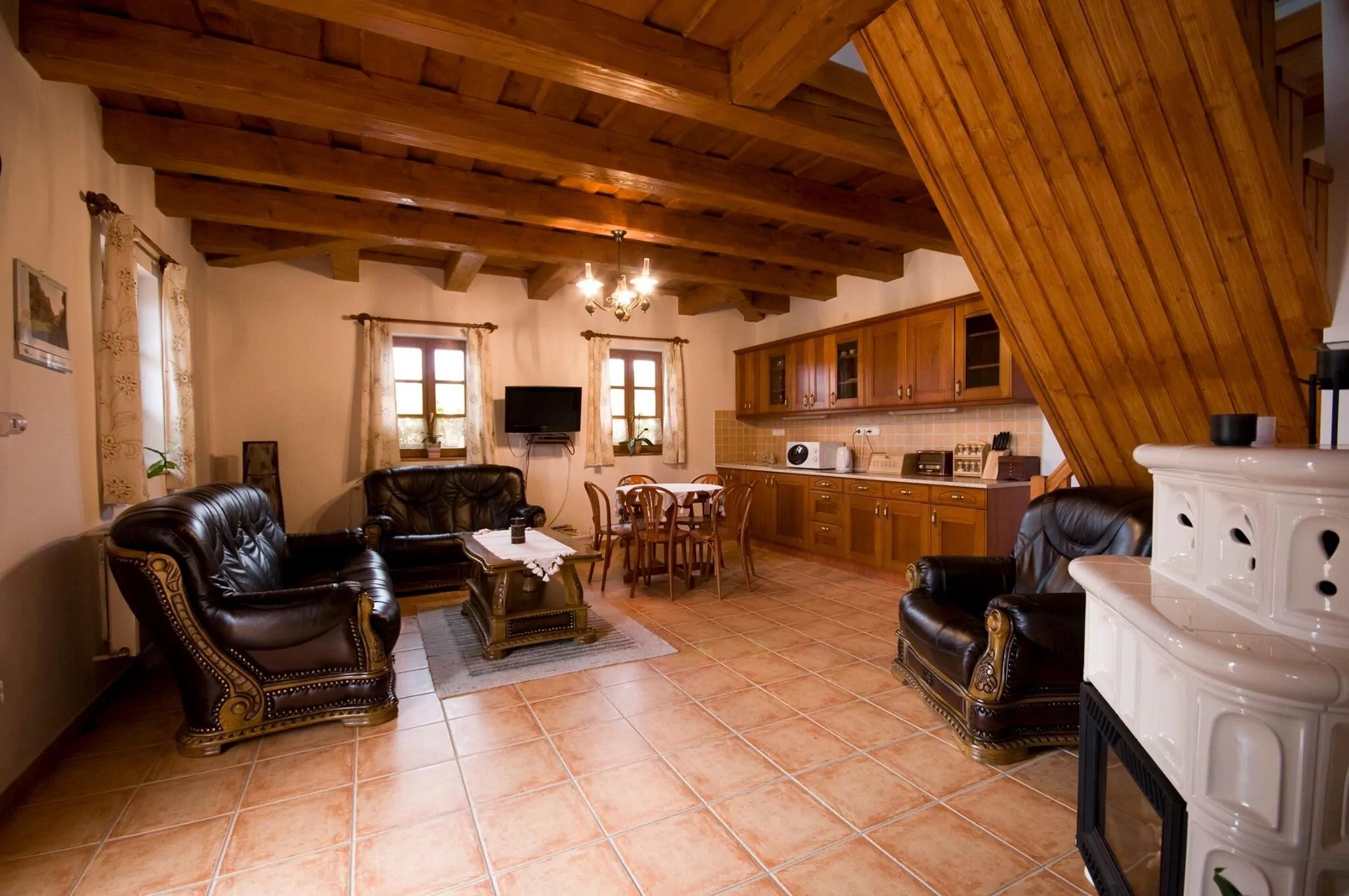 A ház tetőtér beépítésű, az emeleten mellékhelyiség és 2 szoba található. Az emeleti szobák 5 illetve 3 ágyasak. A földszinten található egy kétágyas szoba, mellékhelyiség, fürdőszoba, nappali-étkező illetve konyha. Az udvaron kényelmes pihenést biztosítunk, legfeljebb madárcsicsergés, vagy az őszi időszakban a szarvasok bőgése "zavarhatja" vendégeink üdülését. A teraszon elhelyezkedő filagóriában beépített tűzhely illetve grillkemence áll vendégeink rendelkezésre. A ház téli időszakban is üzemel, központi fűtéssel. A hangulatot és a hőmérsékletet fokozhatjuk a nappali kandallójával, ahol téli estéken ropoghat a pattogó tűz.