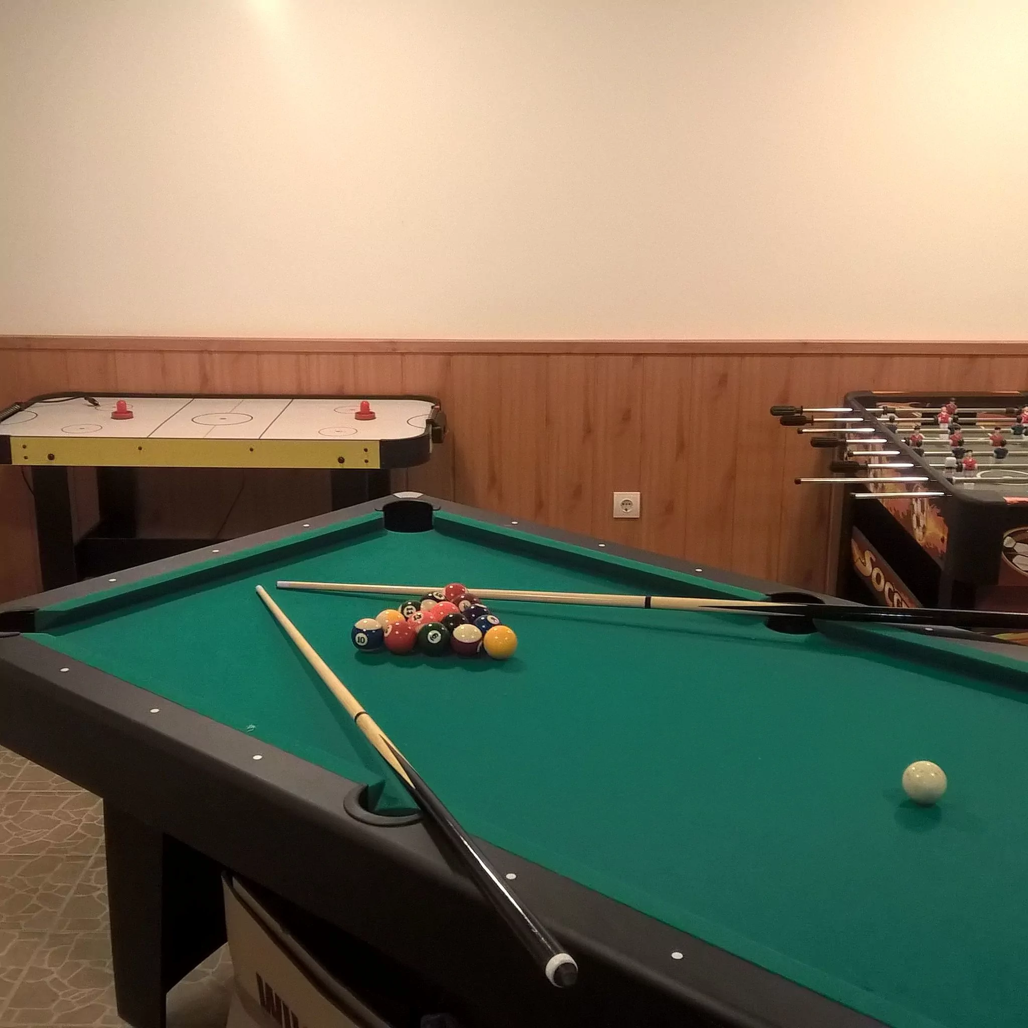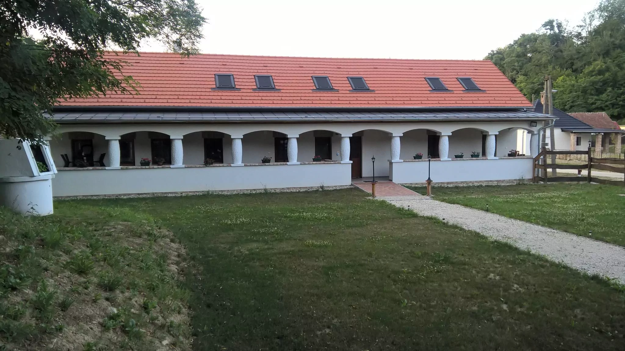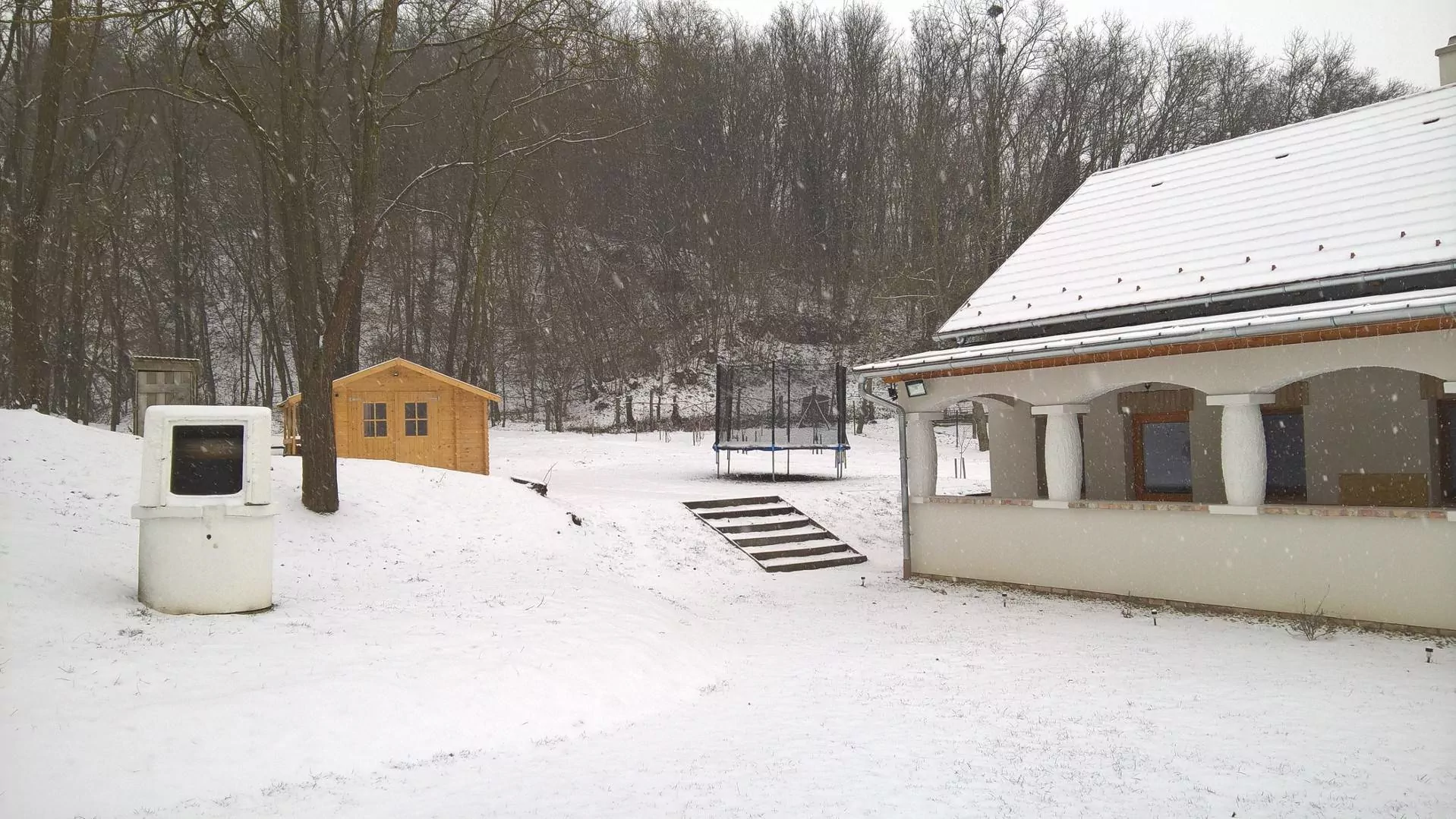 A járdát a korábbi szórt kavicsos helyett téglakövesre cseréltük, felépítettünk egy szerszámtárolót, továbbá kialakítottunk egy szalonnasütőt, ahol bográcsozásra is lehetőség nyílik. A gyerekeket játszótérrel kétféle csúszdával, mérleghintával, homokozóval, hintákkal, kötélhágcsóval és trambulinnal várjuk.  A házban széles sávú internet rendelkezésre áll. Okos televízióink, illetve androidos tv-ookosítók állnak rendelkezésre a streaming szolgáltatások, valamint a több mint 100 csatornával rendelkezésre álló sweet.tv szolgáltatás eléréséhez.