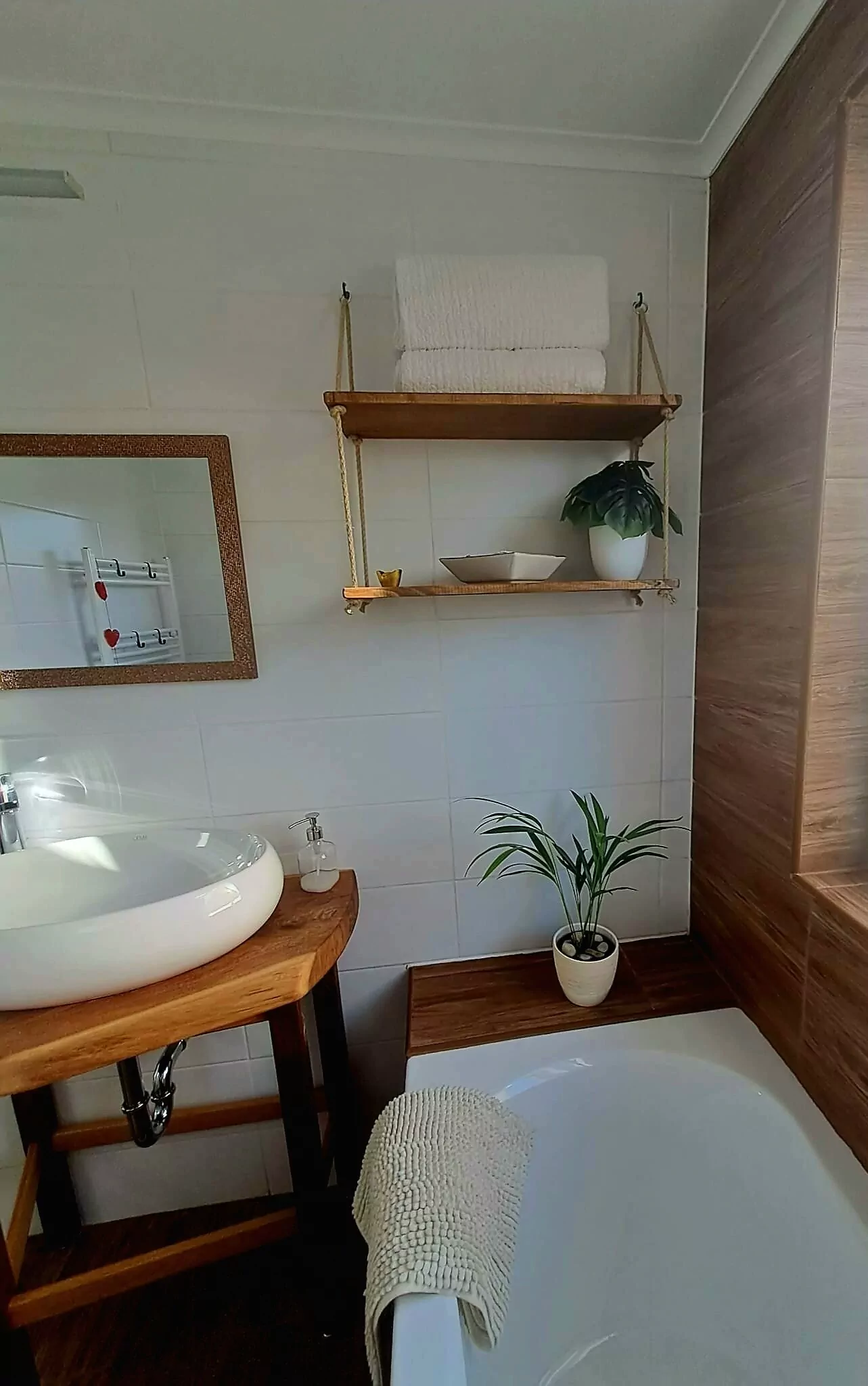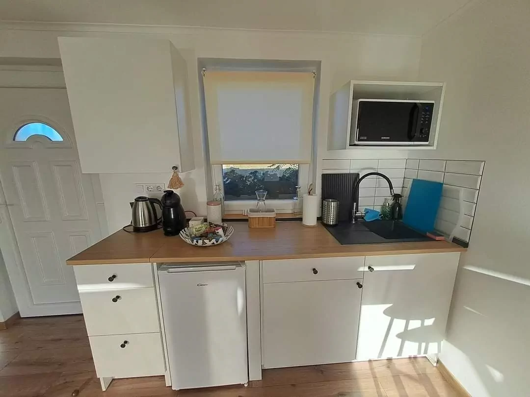 A házban jól felszerelt konyha (mobil indukciós főzőlap, mikrohullámú sütő, kávéfőző kávé bekészítéssel, vízforraló, edények, stb.), nappali,fürdőszoba (törölköző, tusfürdő, hajszárító rendelkezésre áll) és egy tetőtéri hálószoba található.