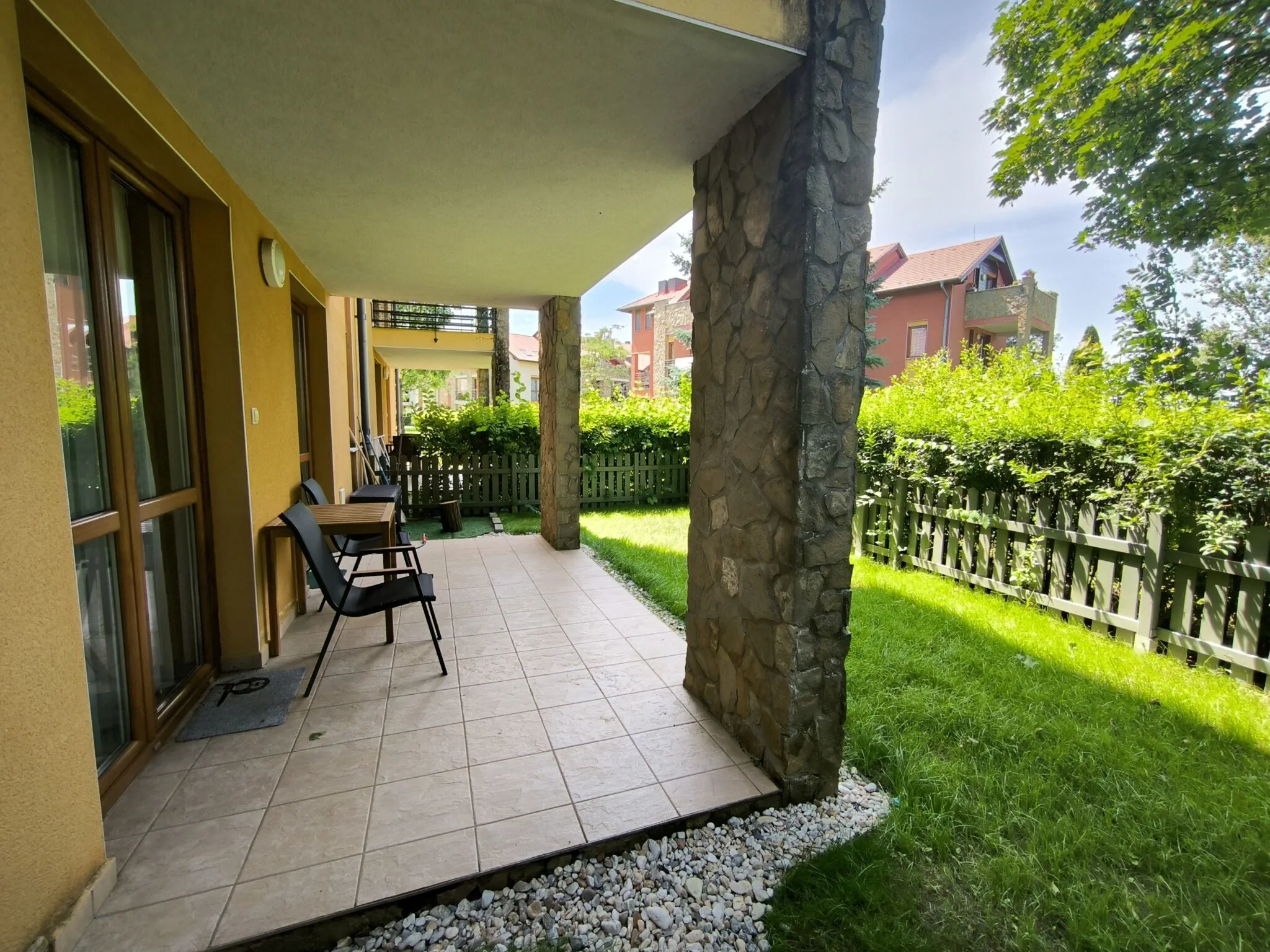 Földszinti, klimatizált apartmanunk 2 hálószobával + amerikai konyhás nappalival, jól felszerelt konyhával, saját fürdőszobával és wc-vel várja vendégeit. Az apartman egy kicsi kerítéssel körülvett, saját kerttel és fedett terasszal rendelkezik, így akár házi kedvencét is gondtalanul magával hozhatja, vagy akár minden reggel a teraszon fogyaszthatja el frissen főtt kávéját.