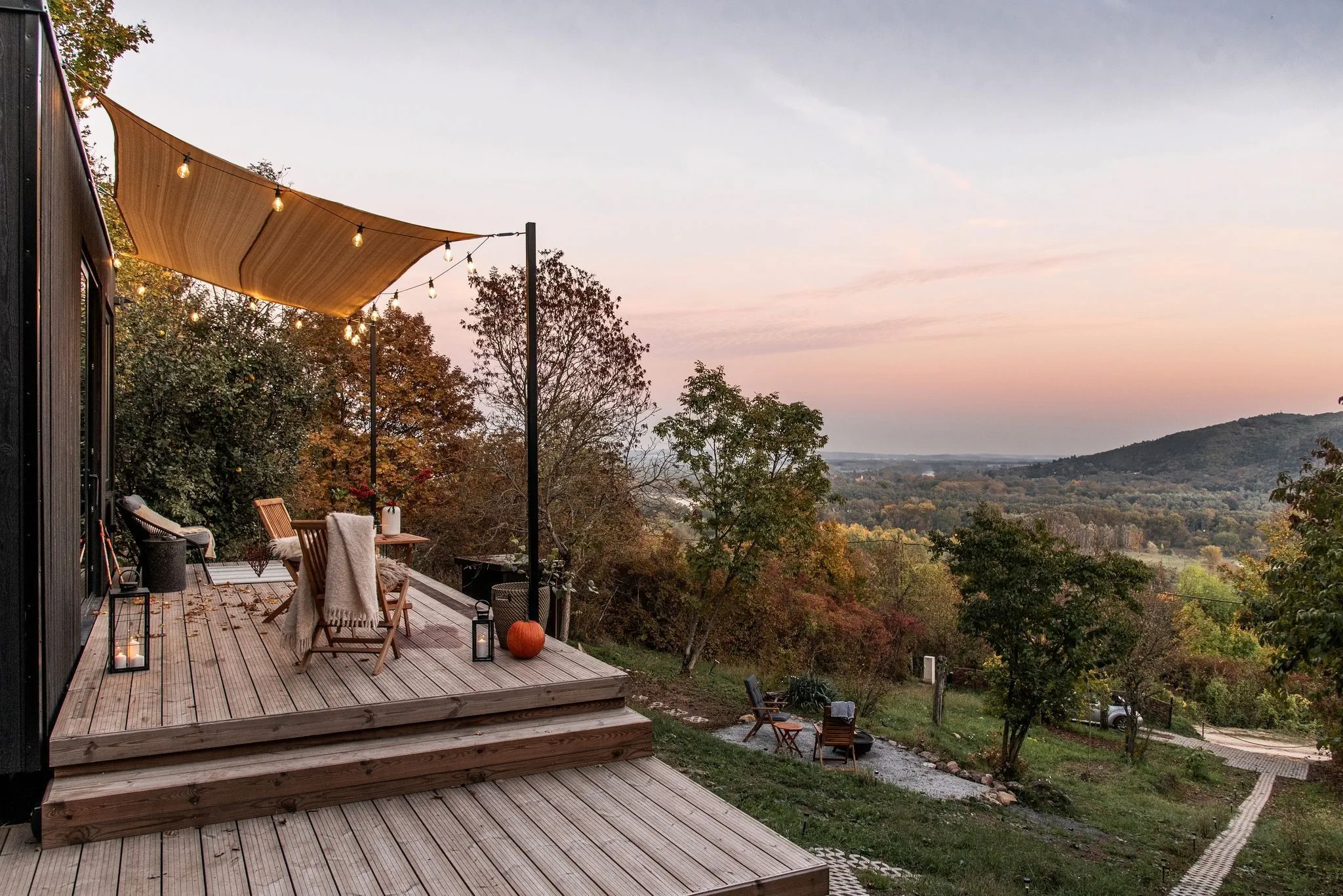 Mindannyiunknak jólesik néha kicsit elbújni a hétköznapok elől, romantikázni, pihenni, feltöltődni. Ez a kisház pont ezért épült. Kényelem és csend, körülötted a természet. Jó nézni a Dunakanyar felett kelő napot a teraszról, érezni az erdő közelségét vagy ücsörögni az éjszakában lobogó tábortűz előtt. Szóval kicsit nyugiban lenni.