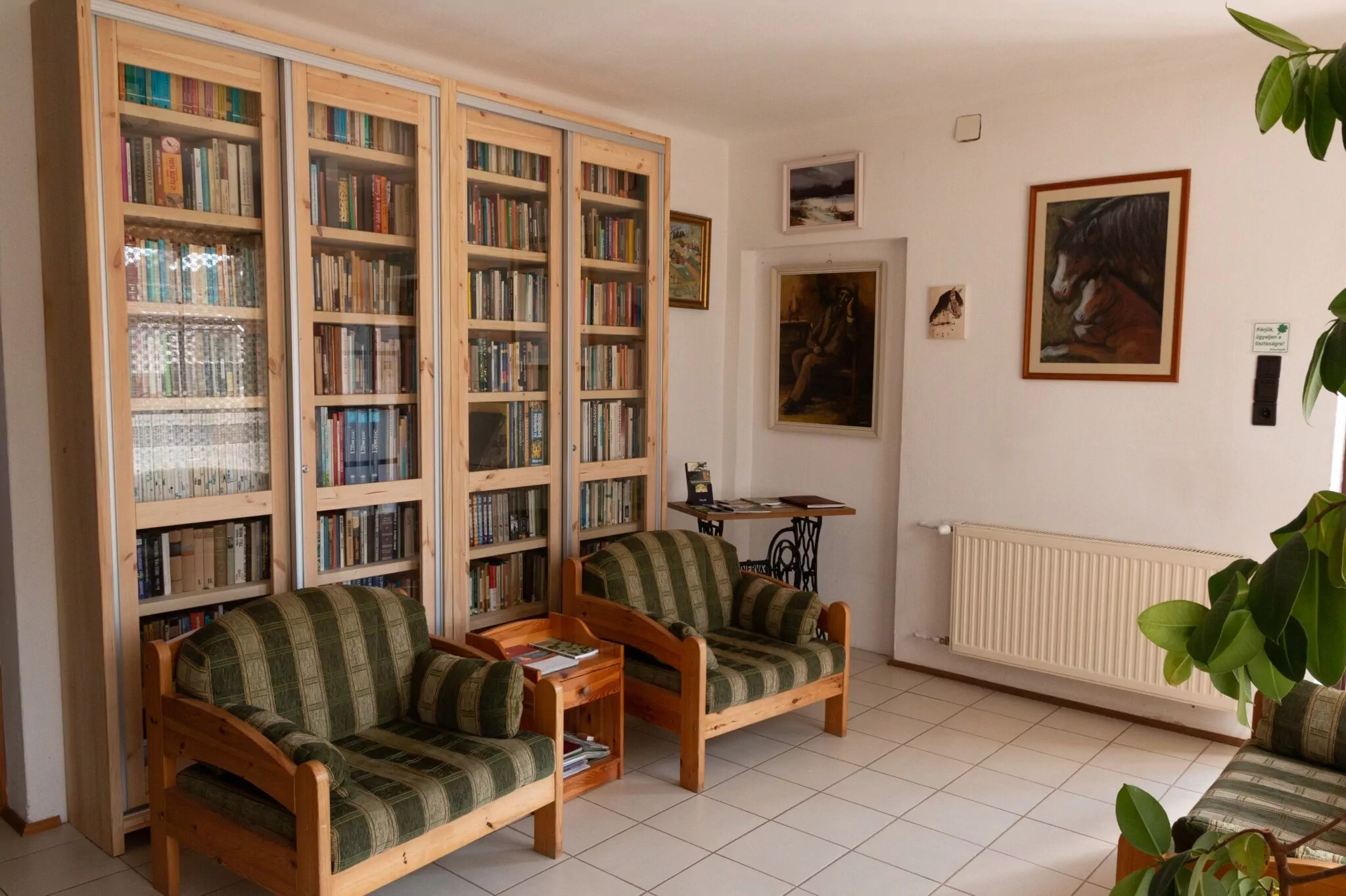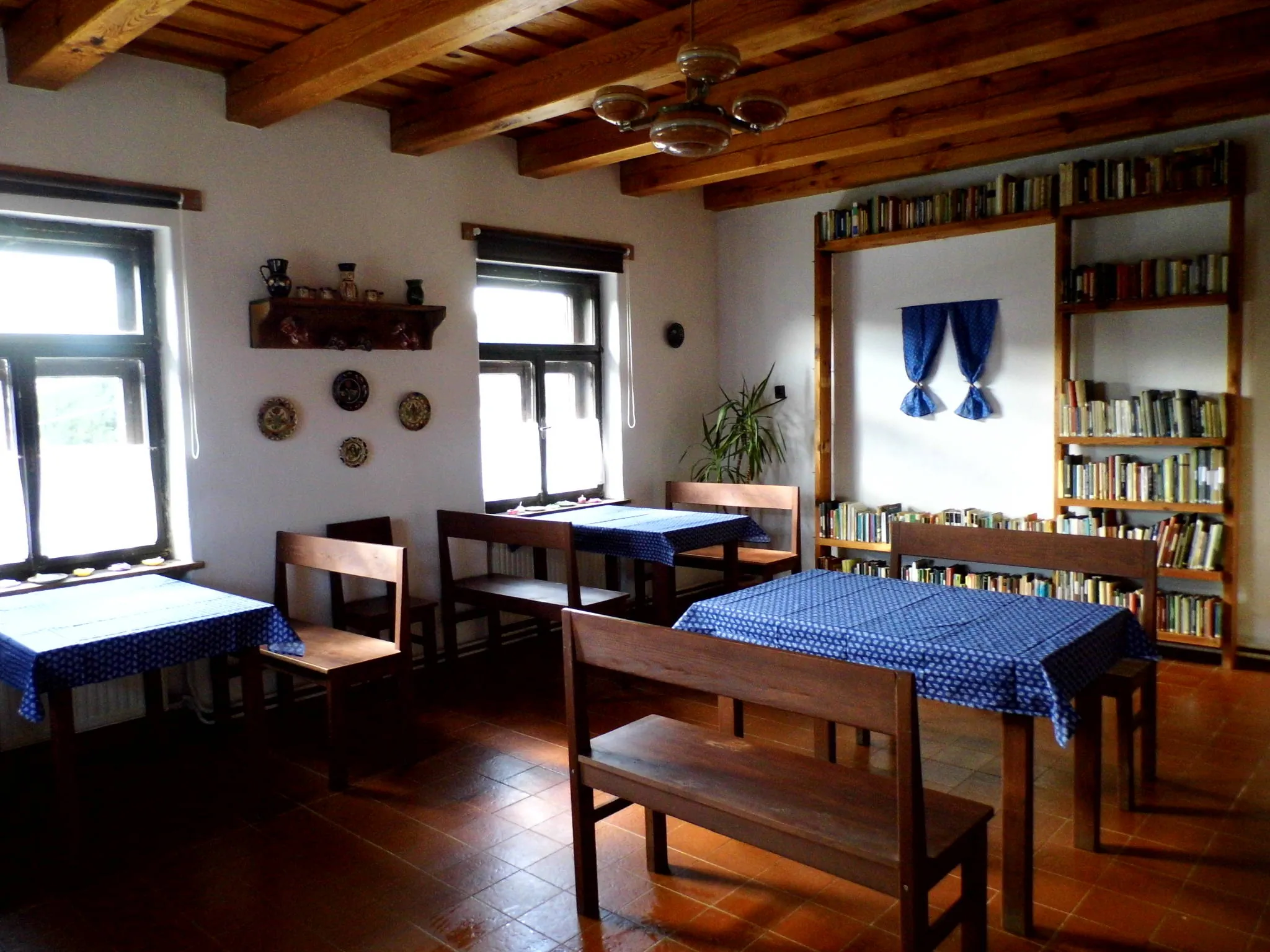A VENDÉGHÁZ egy L alakú, tetőtér beépítéses épület. Földszintjén található a tulajdonosok lakórésze, valamint külön bejárattal itt lehet bejutni a vendégrészbe is. A vendégeink rendelkezésére áll egy földszinti 5 személyes apartman (egy 3 ágyas hálószoba, fürdő, felszerelt konyha, étkező, ennek egyik részében kihúzható 2 személyes ágy), egy tetőtéri 6 személyes apartman (egy 4 ágyas és egy 2 ágyas hálószoba, fürdő, felszerelt konyha, étkező), kettő tetőtéri 4 ágyas szoba, külön-külön fürdő, előterükben közös felszerelt konyha, étkező. Ezenkívül egy földszinti könyvtár és olvasószoba is vendégeink kényelmét szolgálja.