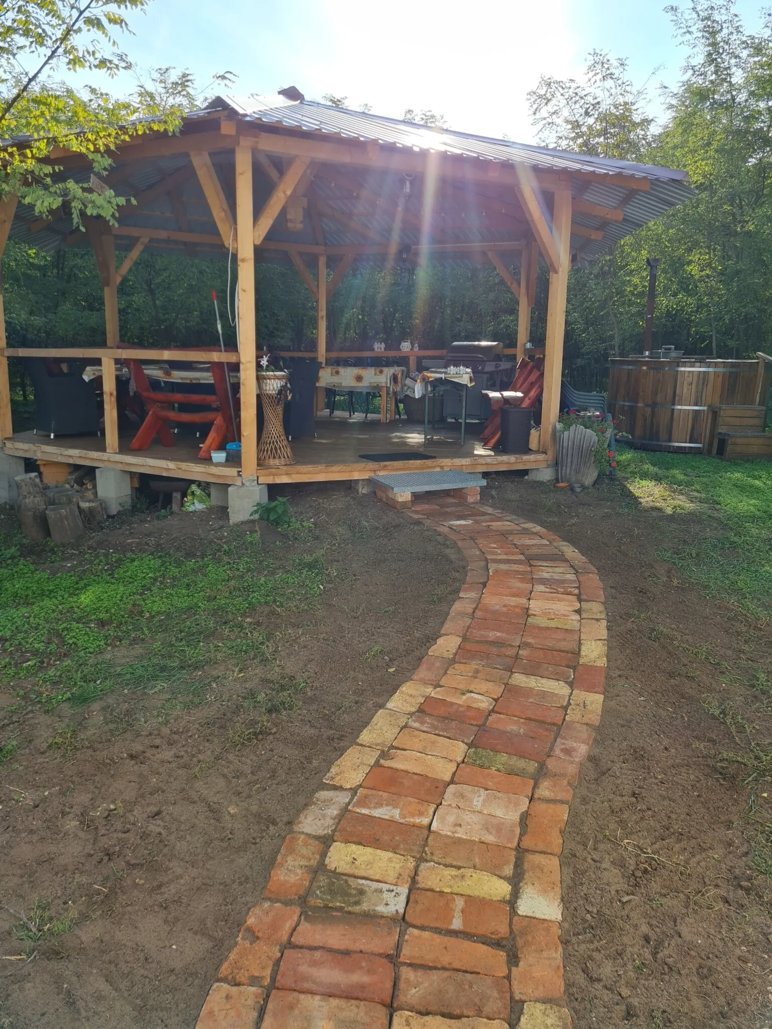 Van tűzrakóhely, kültéri sütési-főzési lehetőséggel, van egy kerti kiülő, ami nagyon hasznos tud lenni nagy napsütésben, vagy az esős napokon.