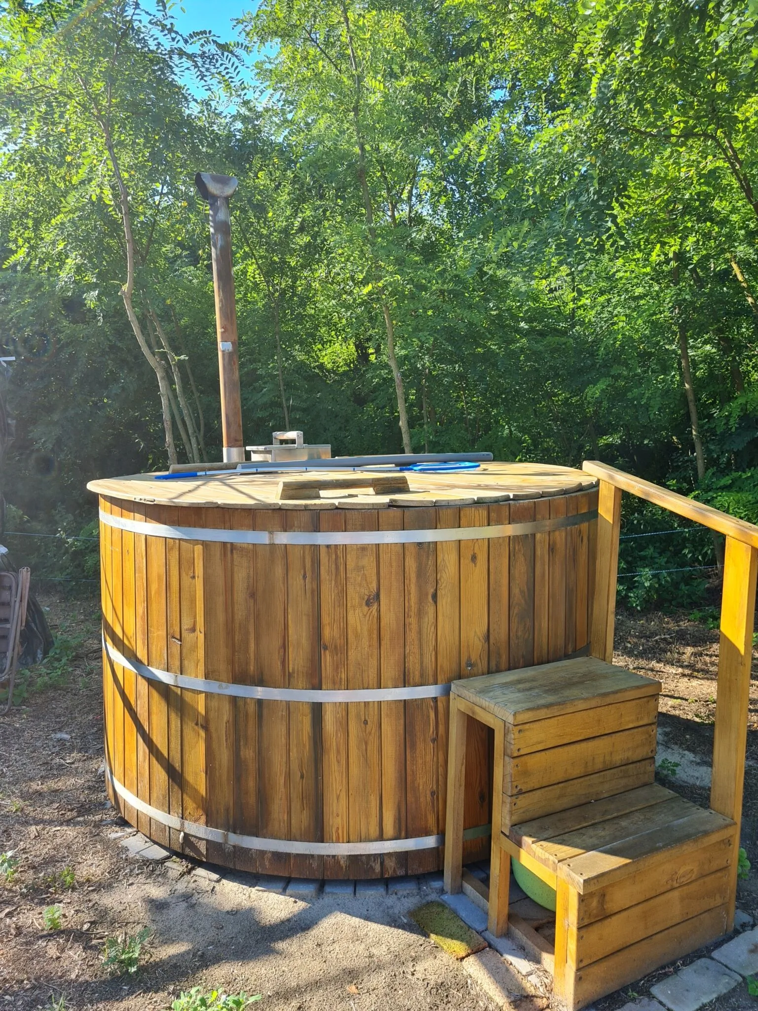 Van egy fatüzelésű dézsafürdőnk is, ami nem fedett, így esténként nagyon hangulatos a csillagos ég alatt lenni fényszennyezettség nélkül.