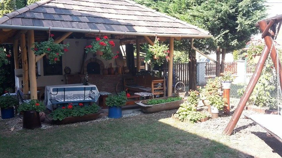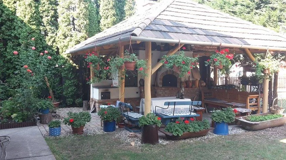A vendégház mellett fedett kerti építmény alatt megtalálható a sparhelt, a sütő, a kemence, a grillsütő, aminek a használati díját a szálláson kell rendezni.
